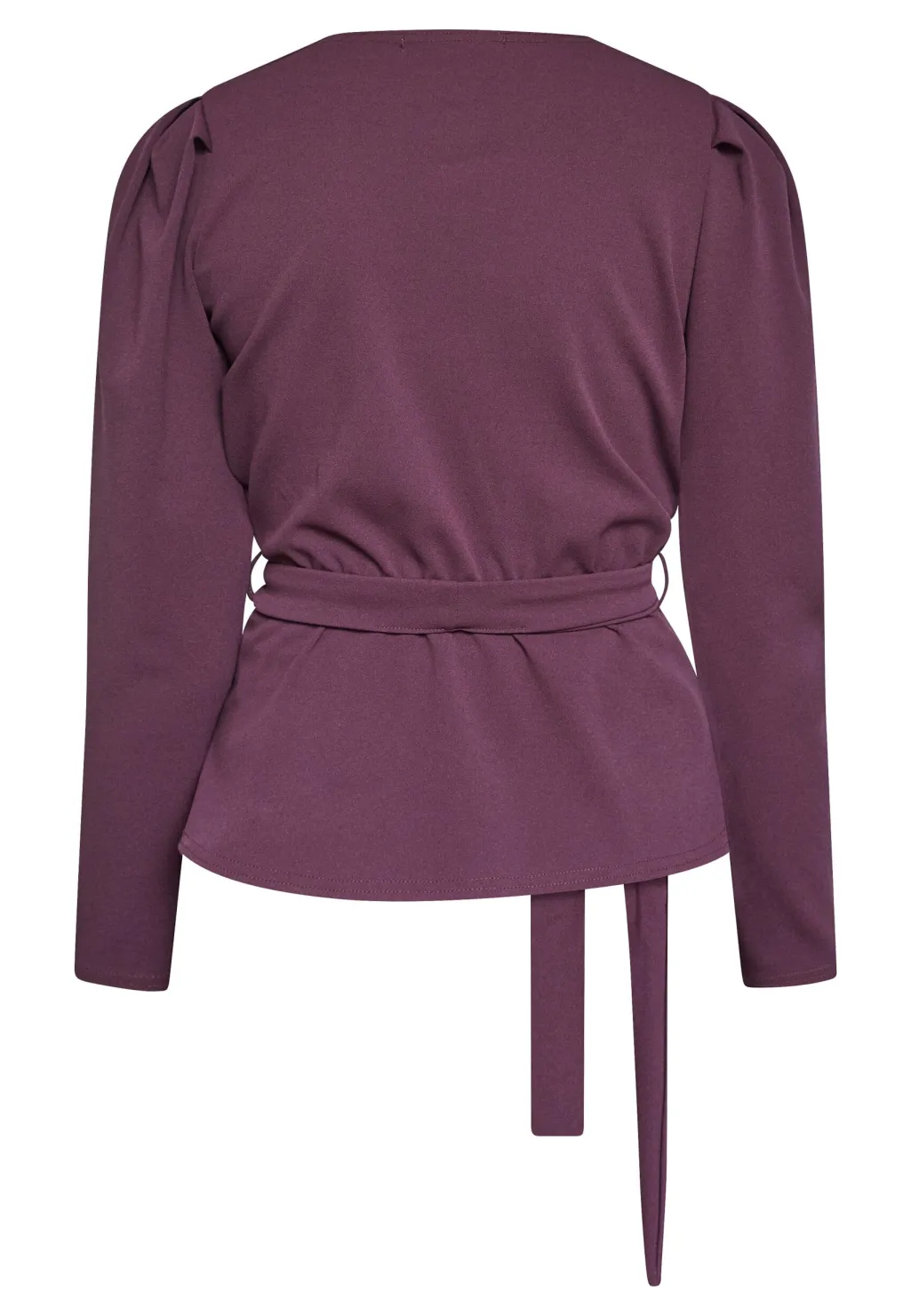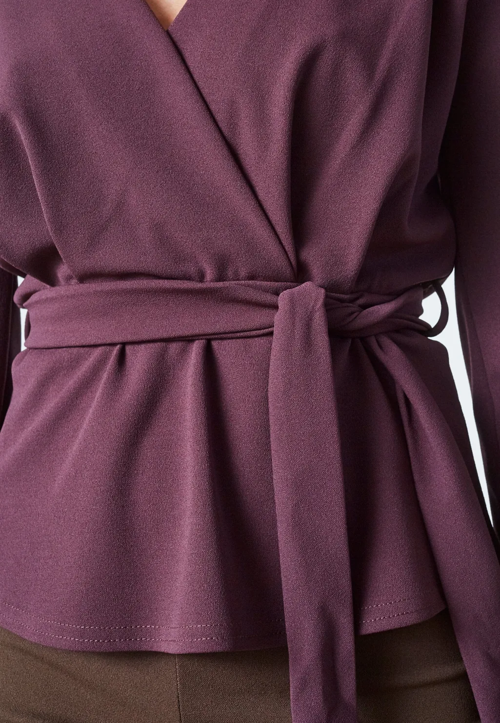 Bluse fra Sisters Point i dyb bordeauxfarve. Blusen har en v-hals og lange ærmer med rynkede detaljer ved skuldrene.