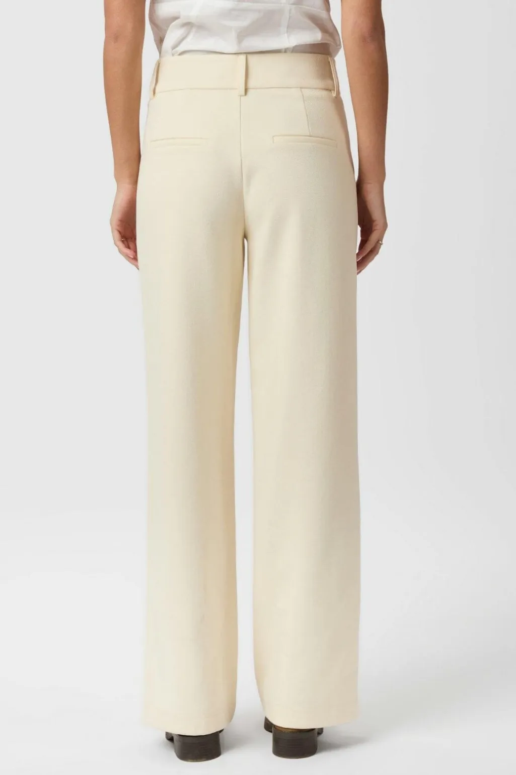 Bløde bukser fra Neo Noir i sandfarvet stof. Bukserne har en høj talje og løs pasform med brede ben ned til gulvet. Materialet er strækbart og har en behagelig struktur.