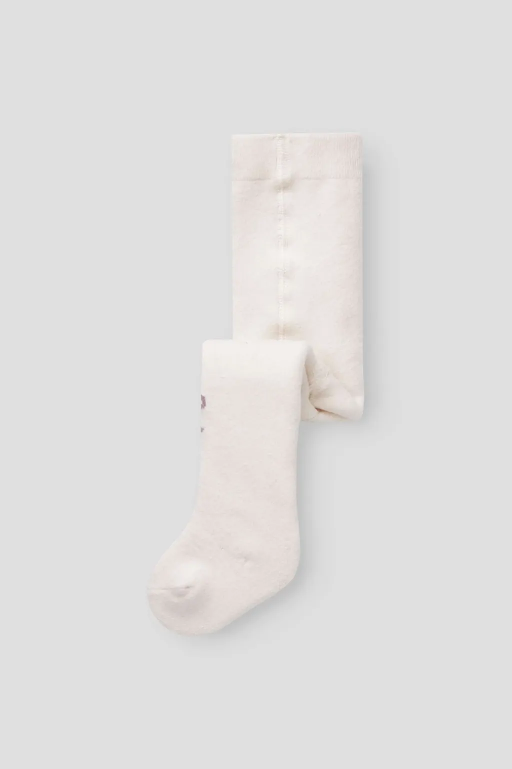 Hvide strømpebukser fra Name It med en enkel stil og en lille dekorativ detalje ved anklen. Fremstillet i en blød blanding af økologisk bomuld med stretch.