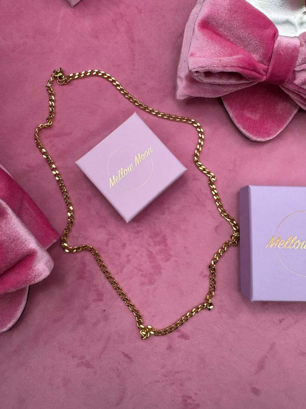 Forgyldt halskæde fra Mellow Moon med Figaro-kædemønster i rustfrit stål. Kæden har et klassisk design med vekslende korte og lange led i en 1+3-kombination.