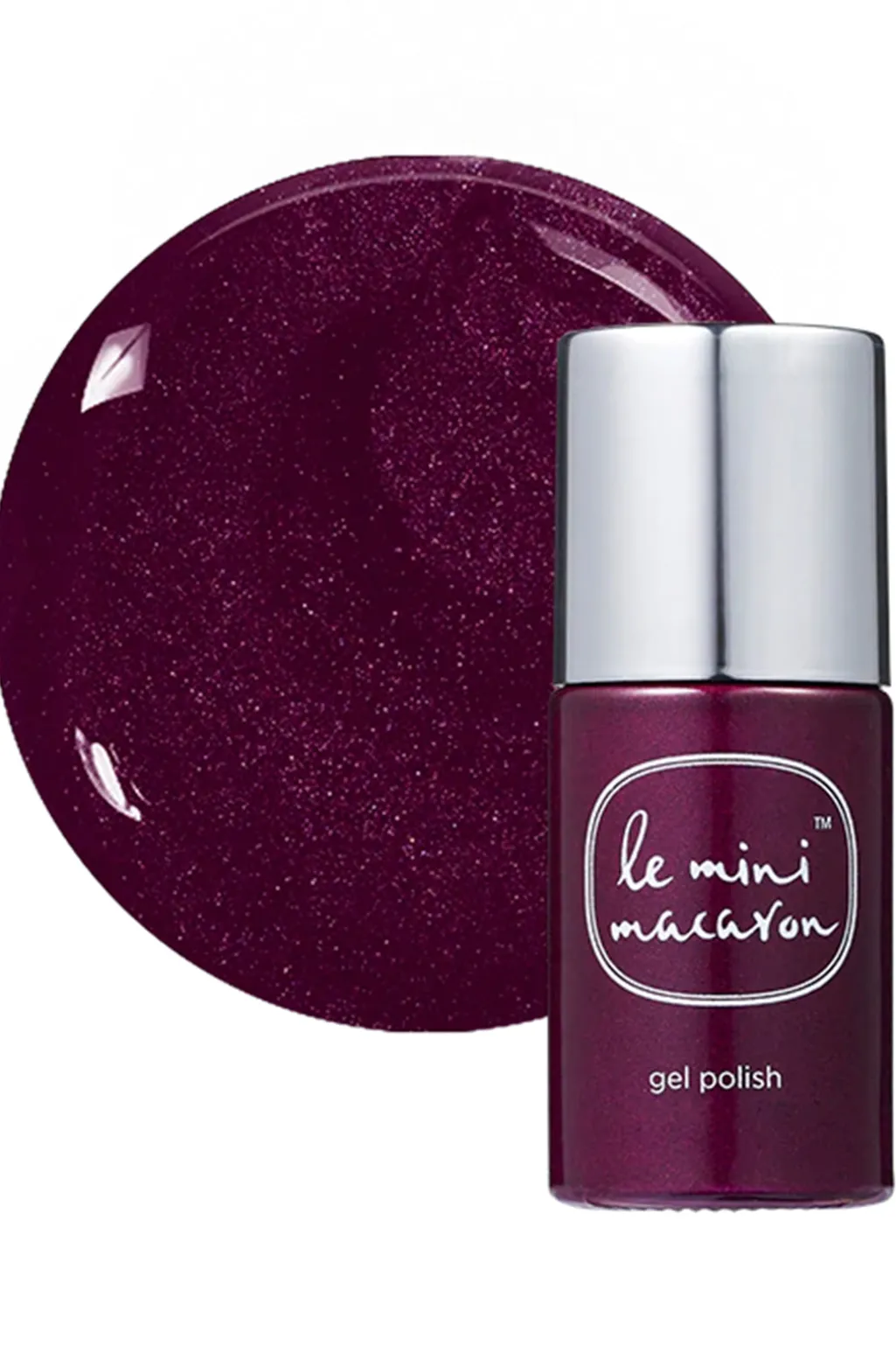 Gelneglelak i en mørk blommefarve med fine glimmerpartikler. Lakken har en 3-i-1 formel med base coat, farve og top coat i samme produkt.
