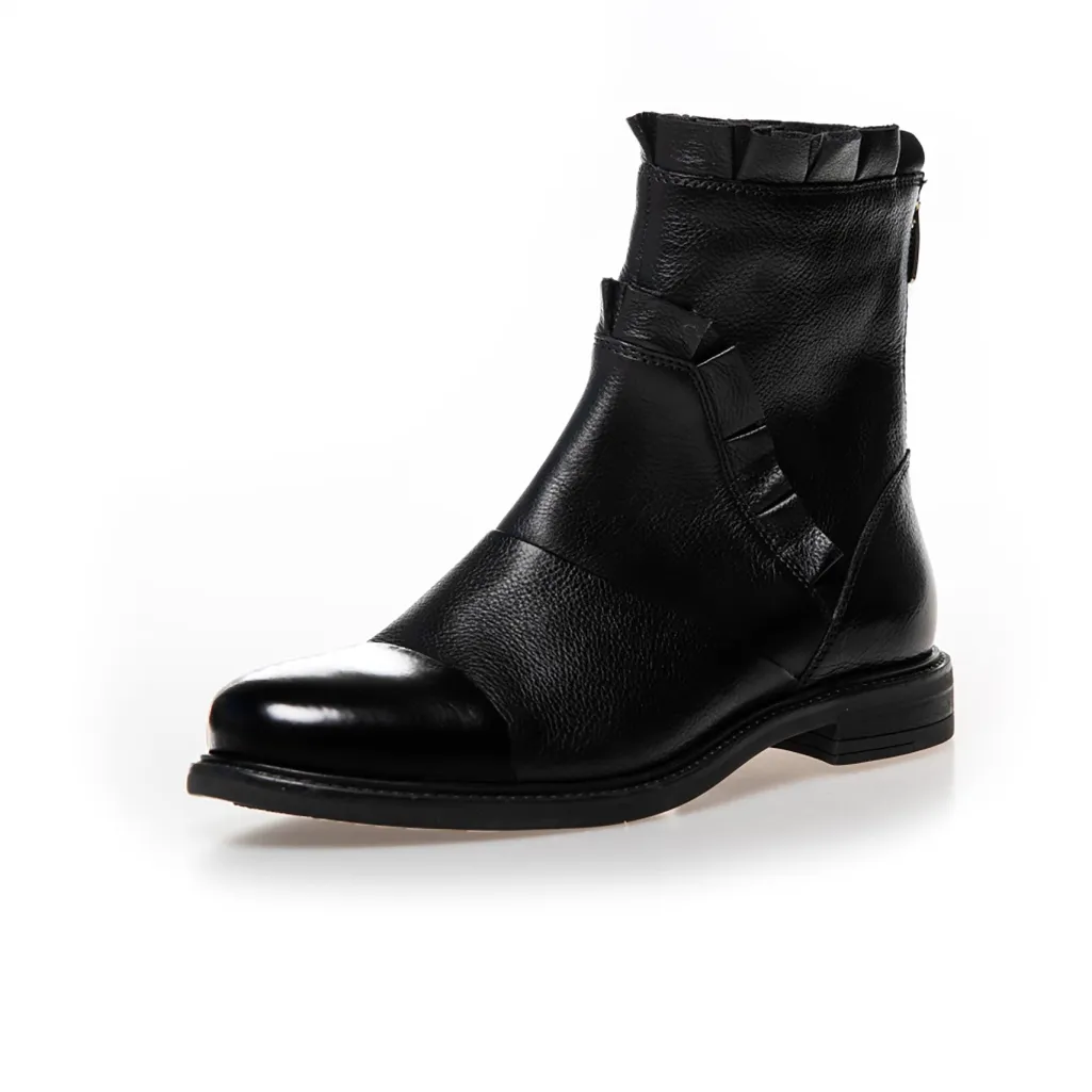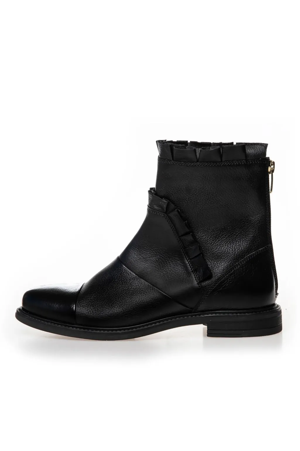 Sort ankelstøvle fra Copenhagen Shoes, lavet af læder. Støvlen har en glat overflade med dekorative detaljer langs skaftet og en lynlås bagpå.