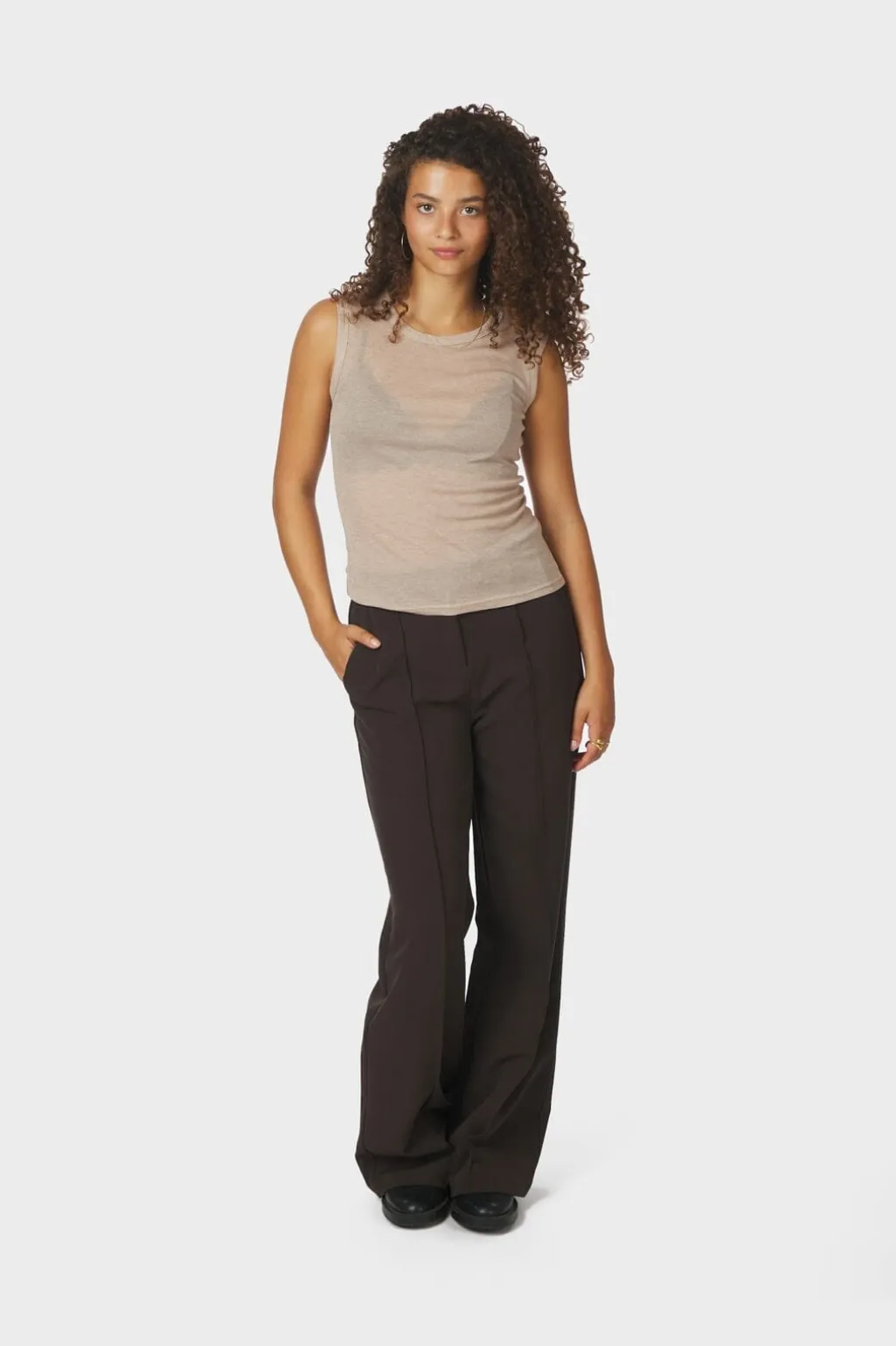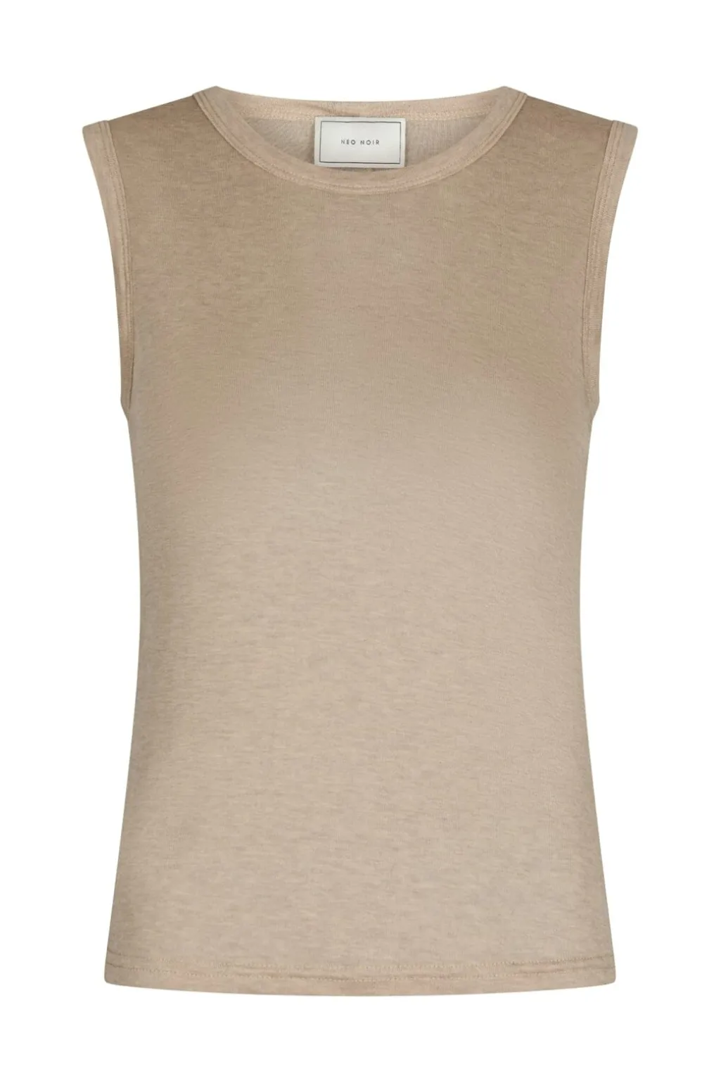 Ærmeløs ribtop fra Neo Noir i beige melange. Toppen er fremstillet af en blød blanding af lyocell og uld med fin ribstruktur og har en tætsiddende pasform.