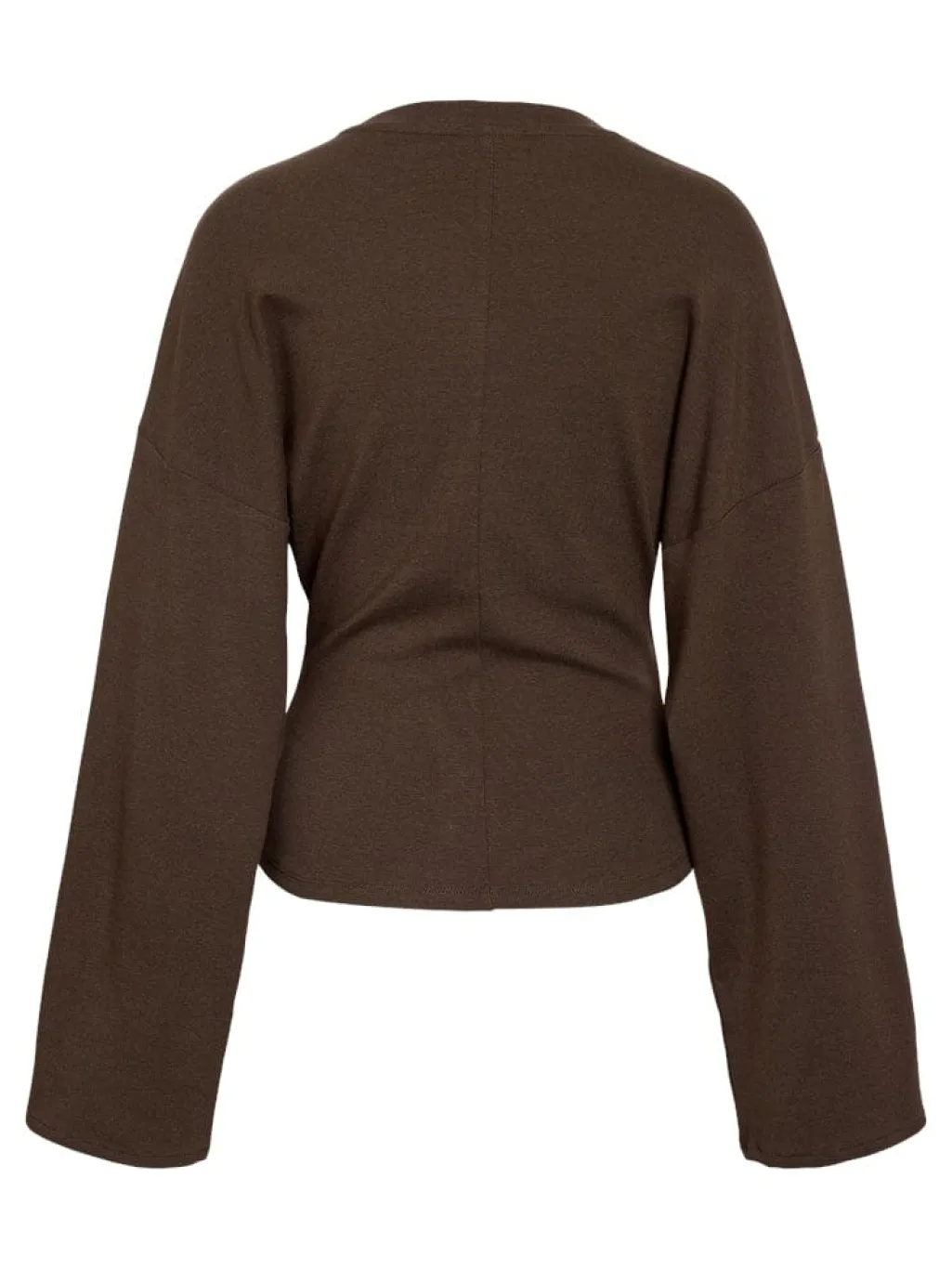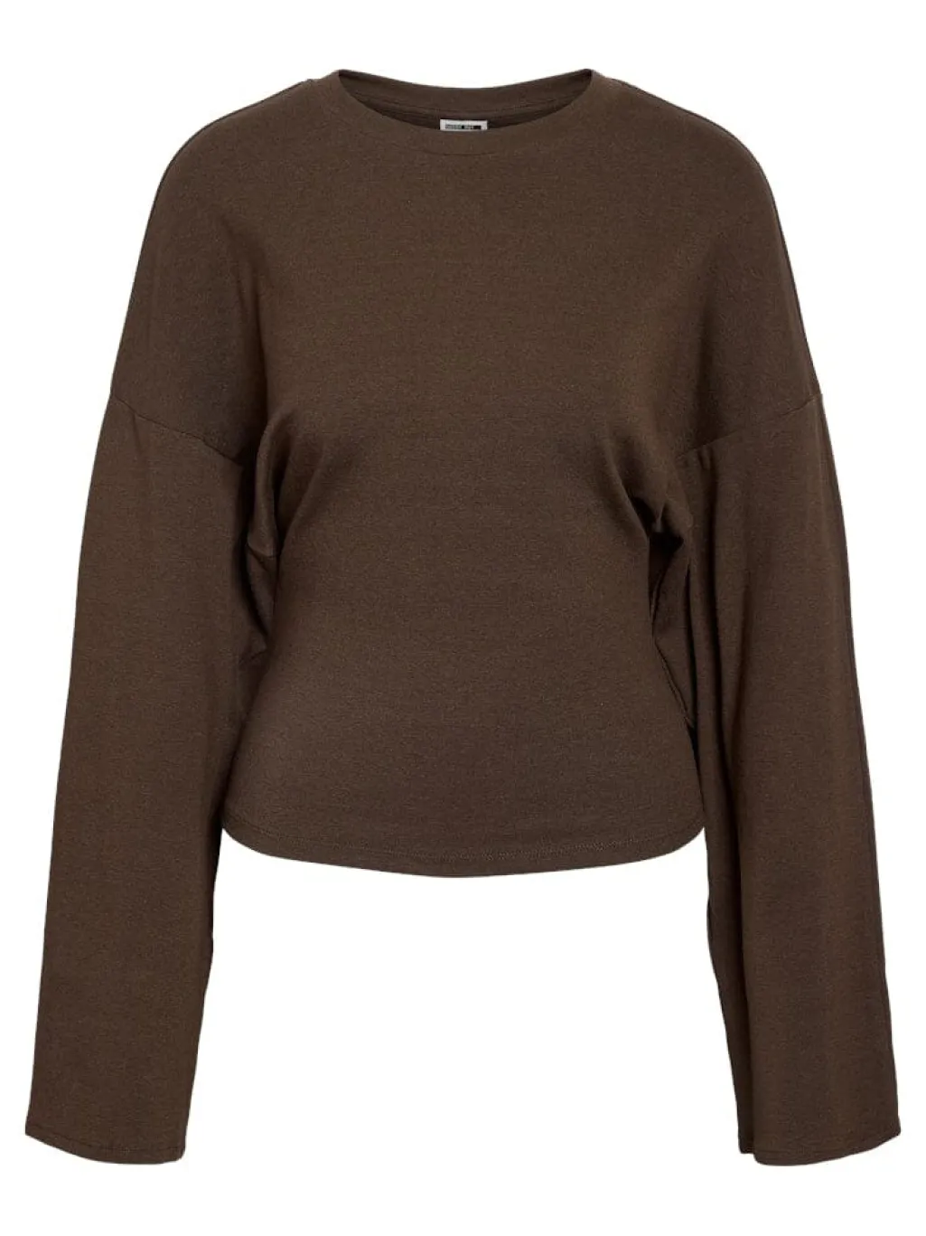 Chokoladebrun top fra Noisy May med lange, brede ærmer og rund halsudskæring. Den løse pasform giver komfort til hverdagsbrug.
