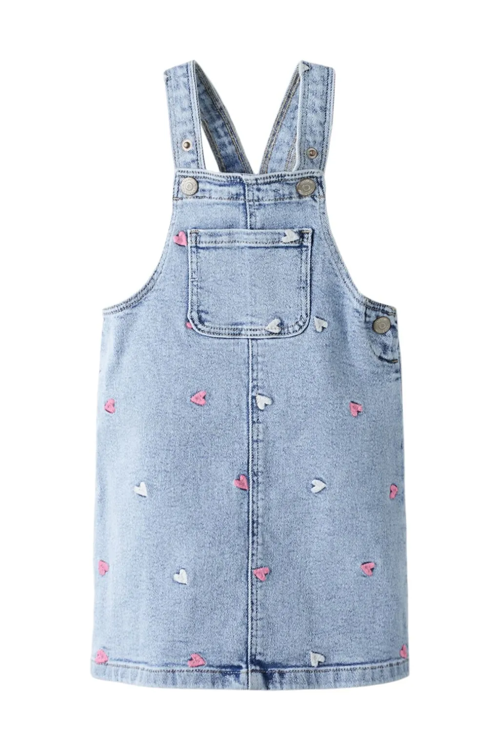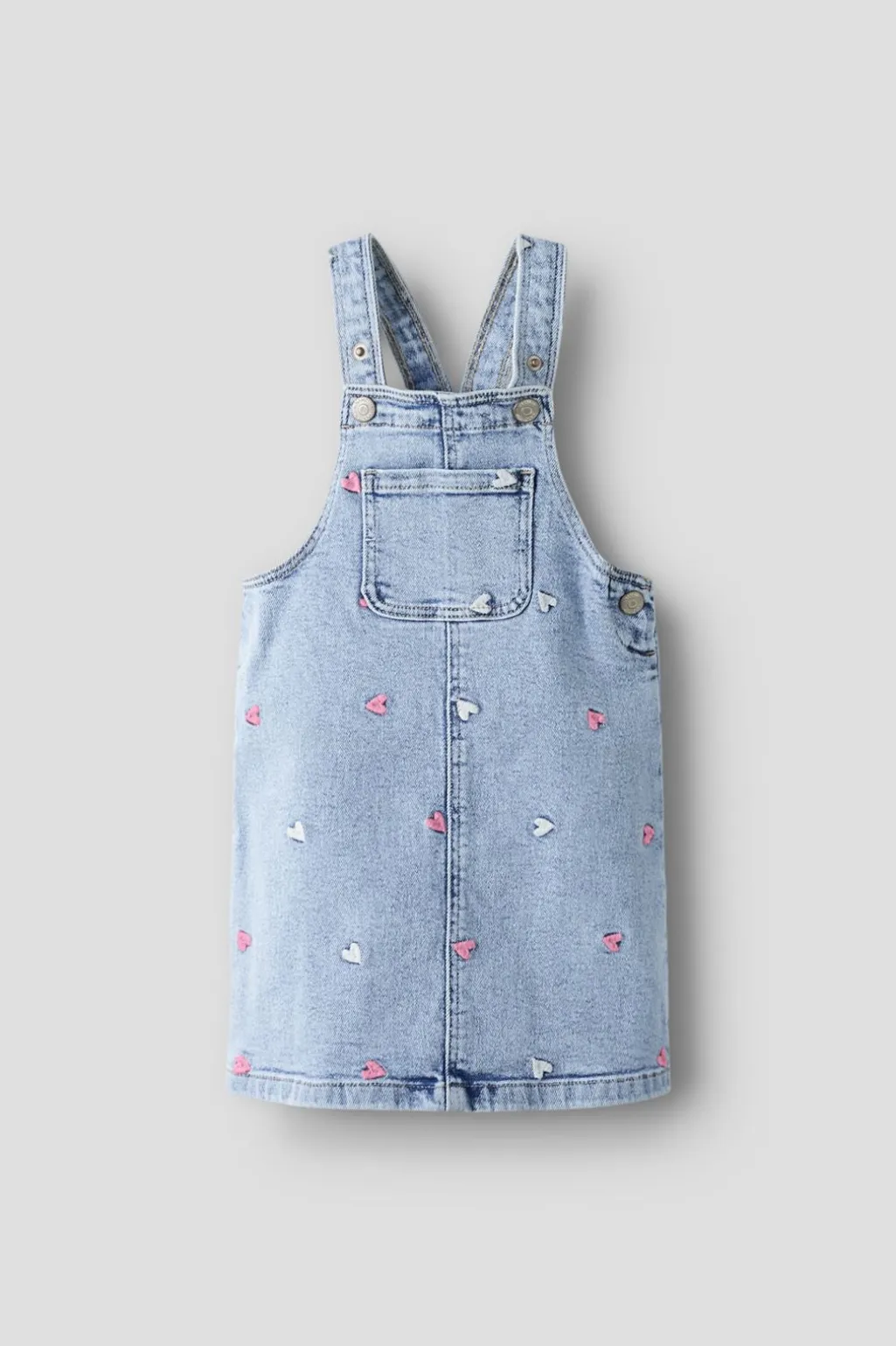 Giv dit barn den perfekte start på dagen med bløde styles i et afslappet og cool look.Denim er en slidstærk, vævet kvalitet, som findes i et utal af udtryk og nuancer.- Produkttype: Onesize Spencer – Hals: Firkantet hals – Ærme: Ærmeløs – Stropper: Justerbare stropper – Lukning: Trykknaplukning – Detaljer: Broderet detalje – Vask/behandling: Kraftig slideffekt på overfladen, let slideffekt på overfladen – Pasform: Regular fit