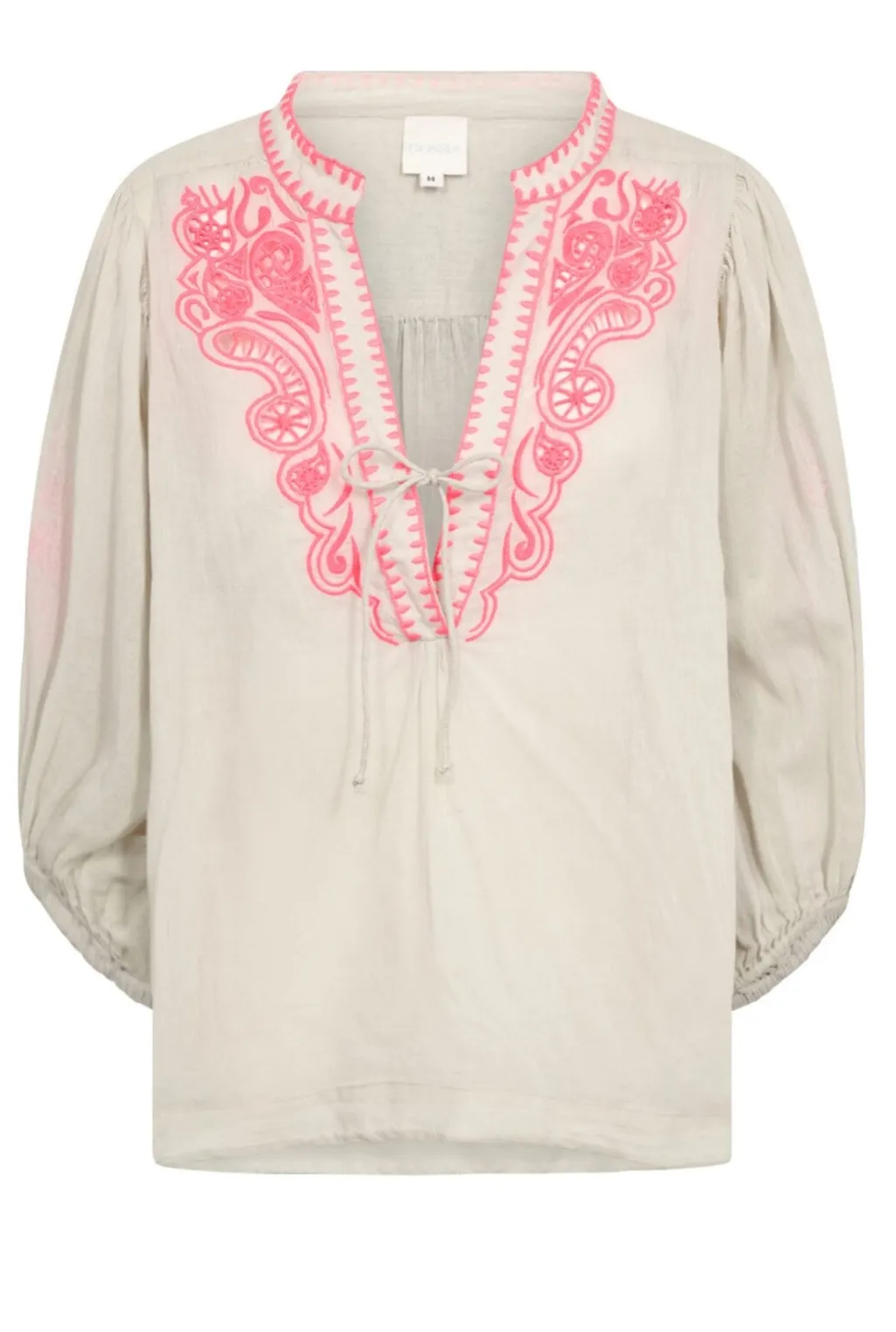 Smuk skjorte med fine blonde detaljer fra Gossia. Skjorten har 3/4 lange ærmer og en V-udskæring