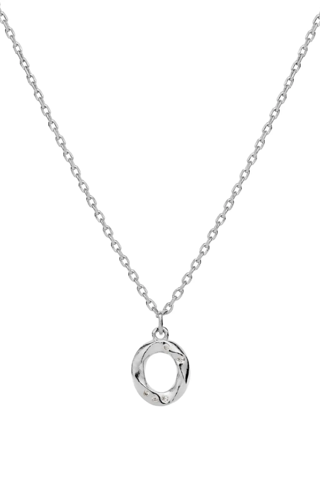 Sølvhalskæde fra Maanesten med et rundt vedhæng. Den har et snoet design med små sten indlagt og er fremstillet af genanvendt sterlingsølv.