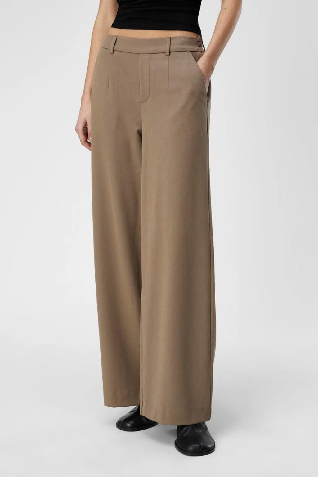 Brede bukser fra Object i en beige-brun nuance. Bukserne har brede ben og en løs pasform.