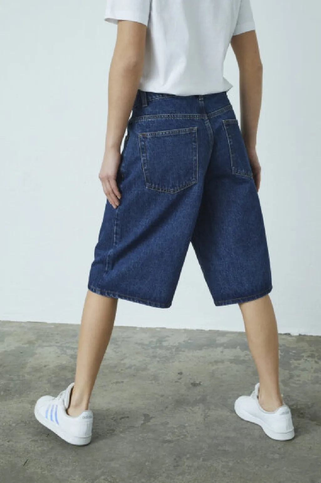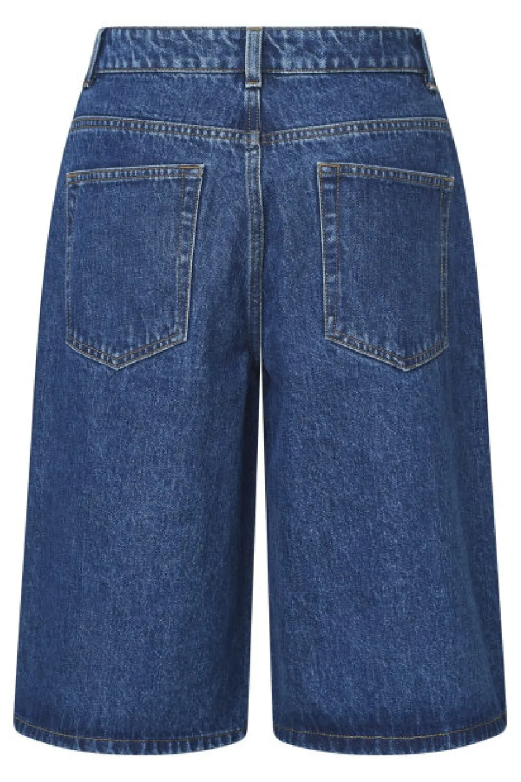 Bermudashorts fra Sisters Point i mørkeblå denim med mellemhøj talje. Shortsene har en løs pasform og fem praktiske lommer.