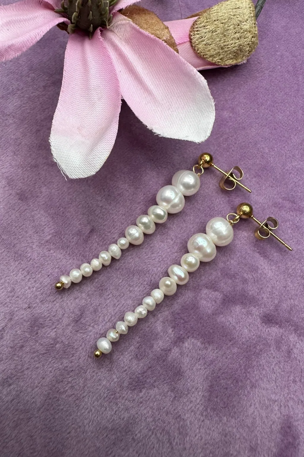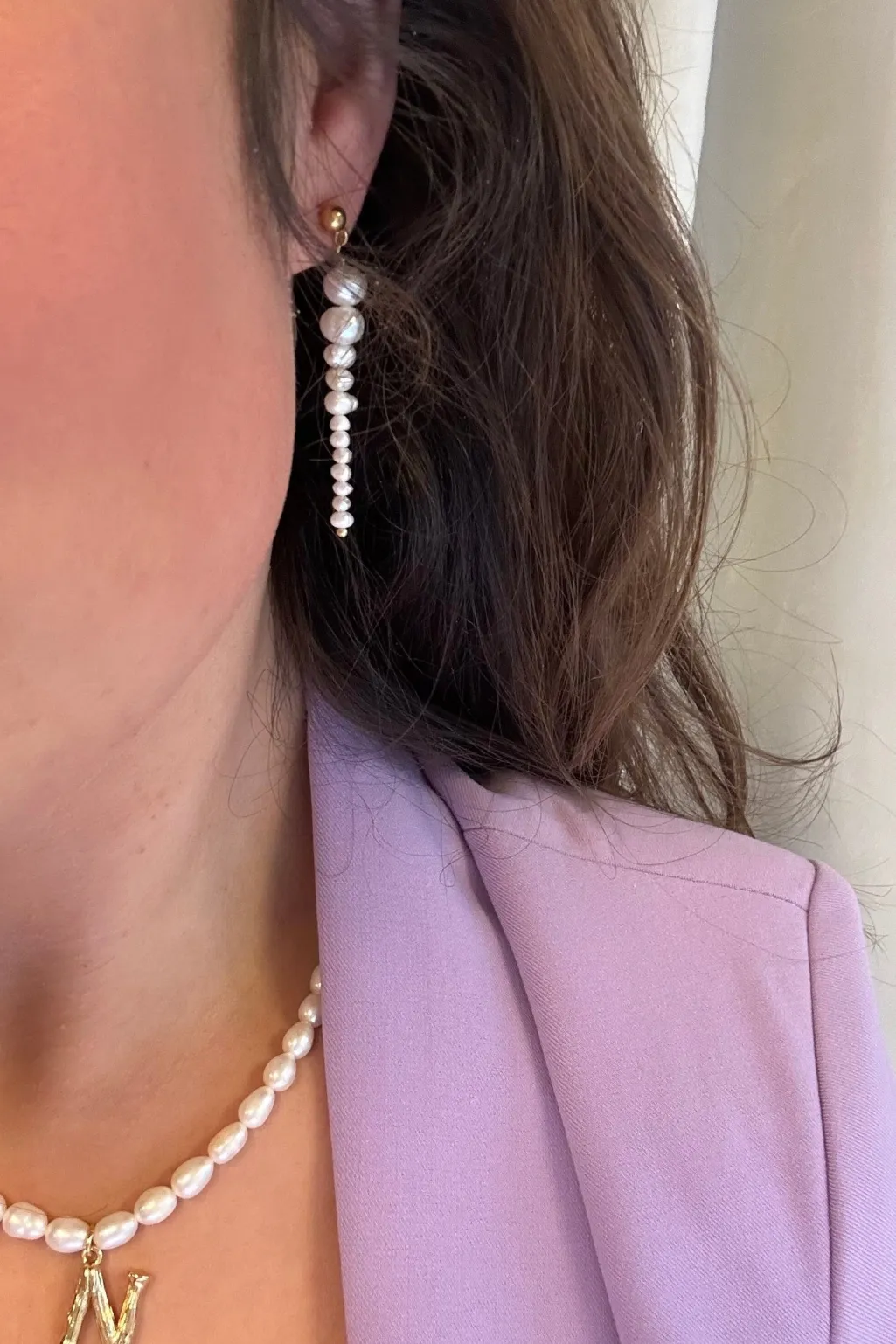 Model: One Pearl Long Earring – Forgyldt