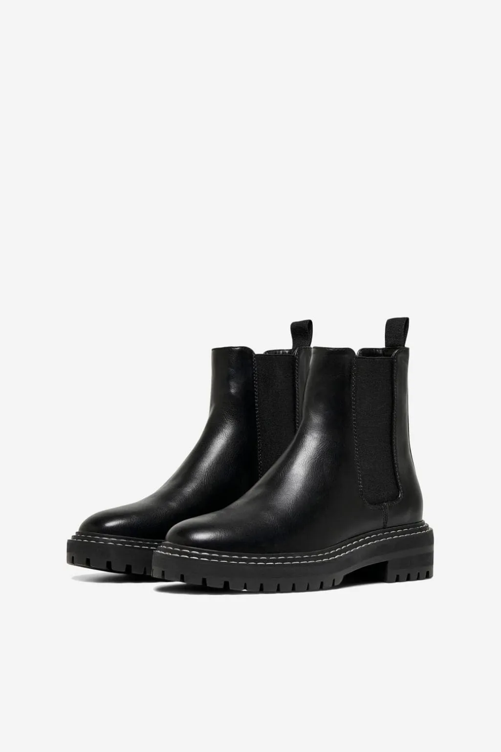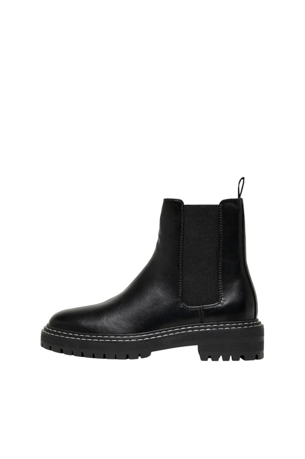 Sorte Chelsea-støvler fra Only Shoes med en enkel silhuet. Støvlerne har elastiske sidepaneler og en trækstrop bagpå.