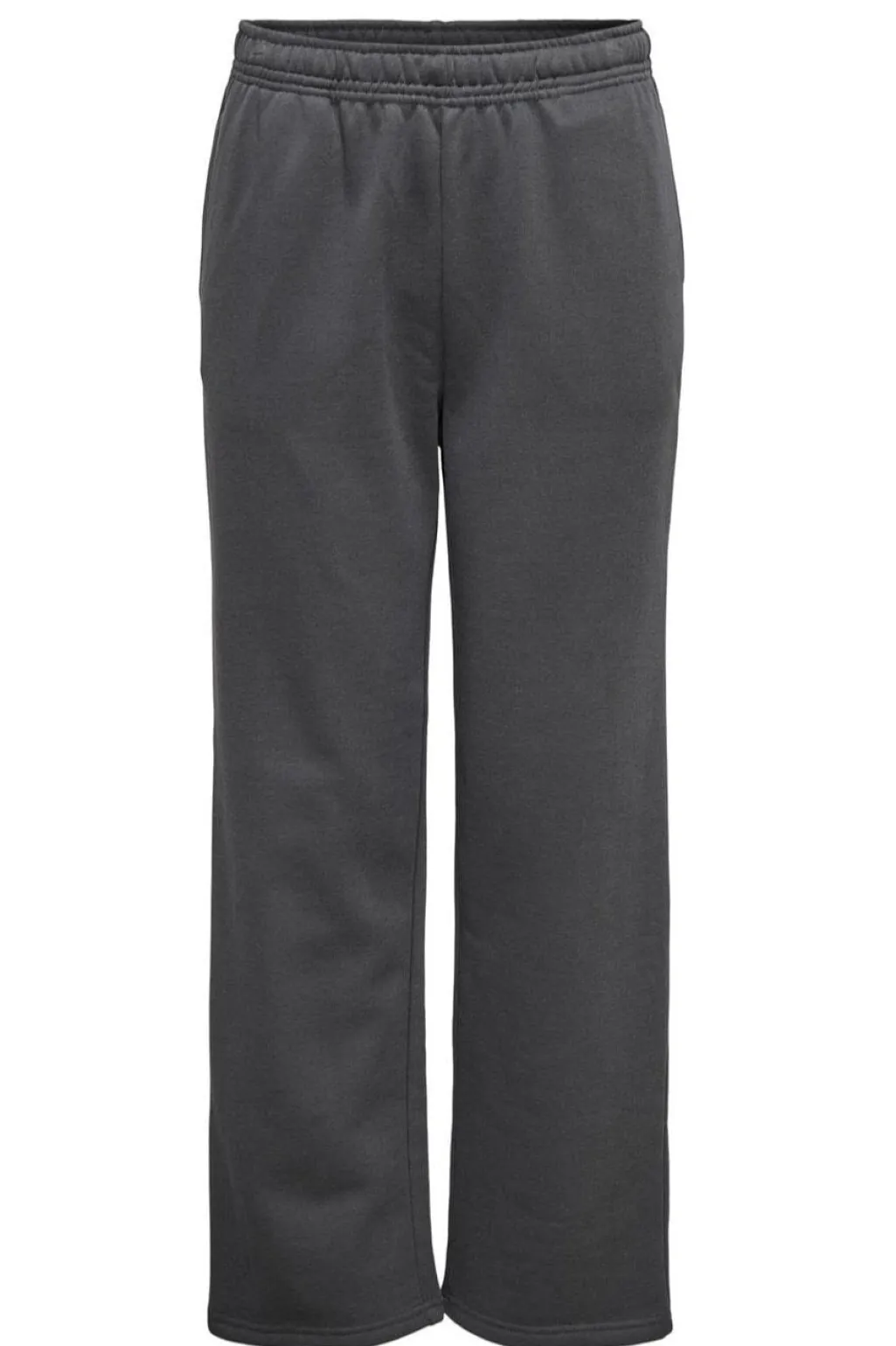 Mørkegrå sweatpants fra Only med lige ben og elastisk talje. Bukserne har en afslappet stil med praktiske detaljer til hverdagsbrug.