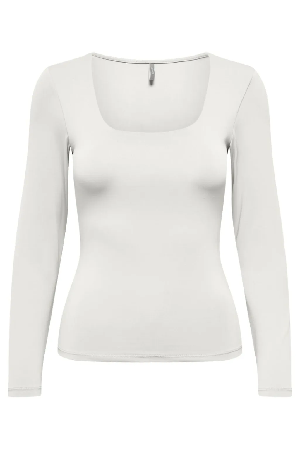 Langærmet top fra Only i farven Cloud Dancer. Toppen har en firkantet halsudskæring og er lavet i et strækbart materiale med en standardpasform.