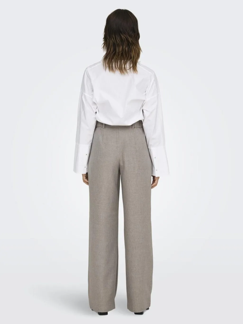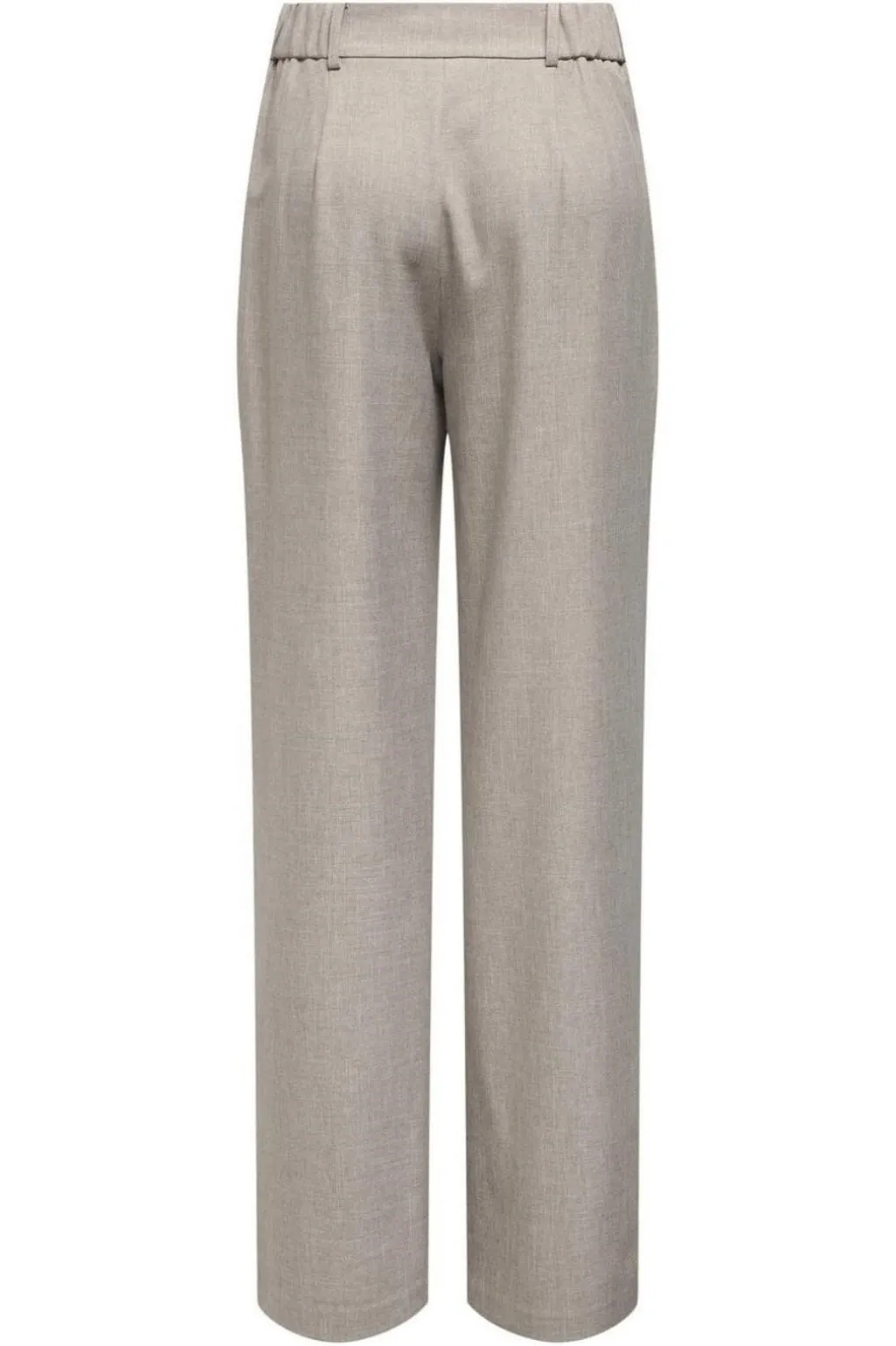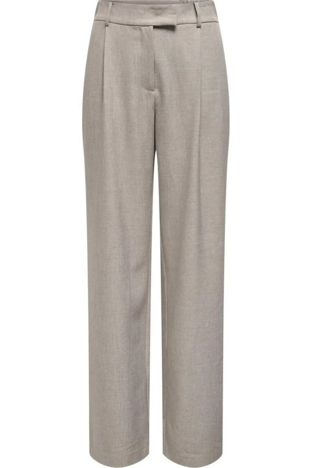 Grå bukser fra Only med straight fit og læg foran. De har en regulær talje med bæltestropper og en praktisk knap- og lynlåslukning.