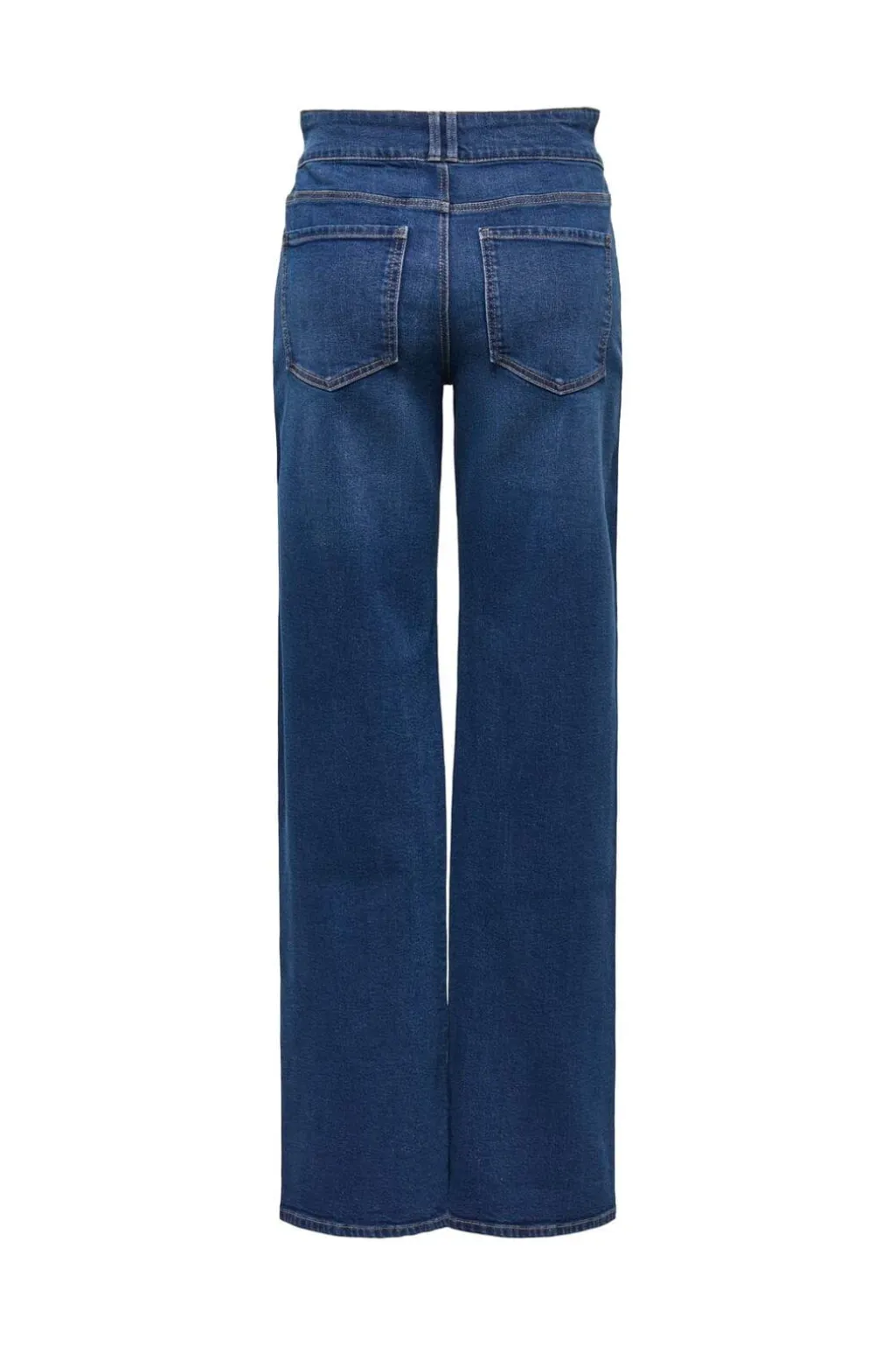 Mørkeblå jeans fra Only med en wide fit-pasform. Jeansene har høj talje og vide ben fra hofte til ankel.
