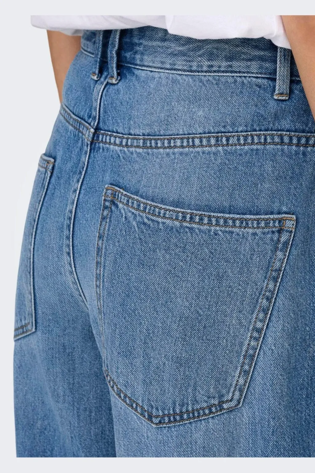 Jeans fra Only i medium blå denim med en barrel-fit pasform. Jeansene har høj talje og en ankellængde.