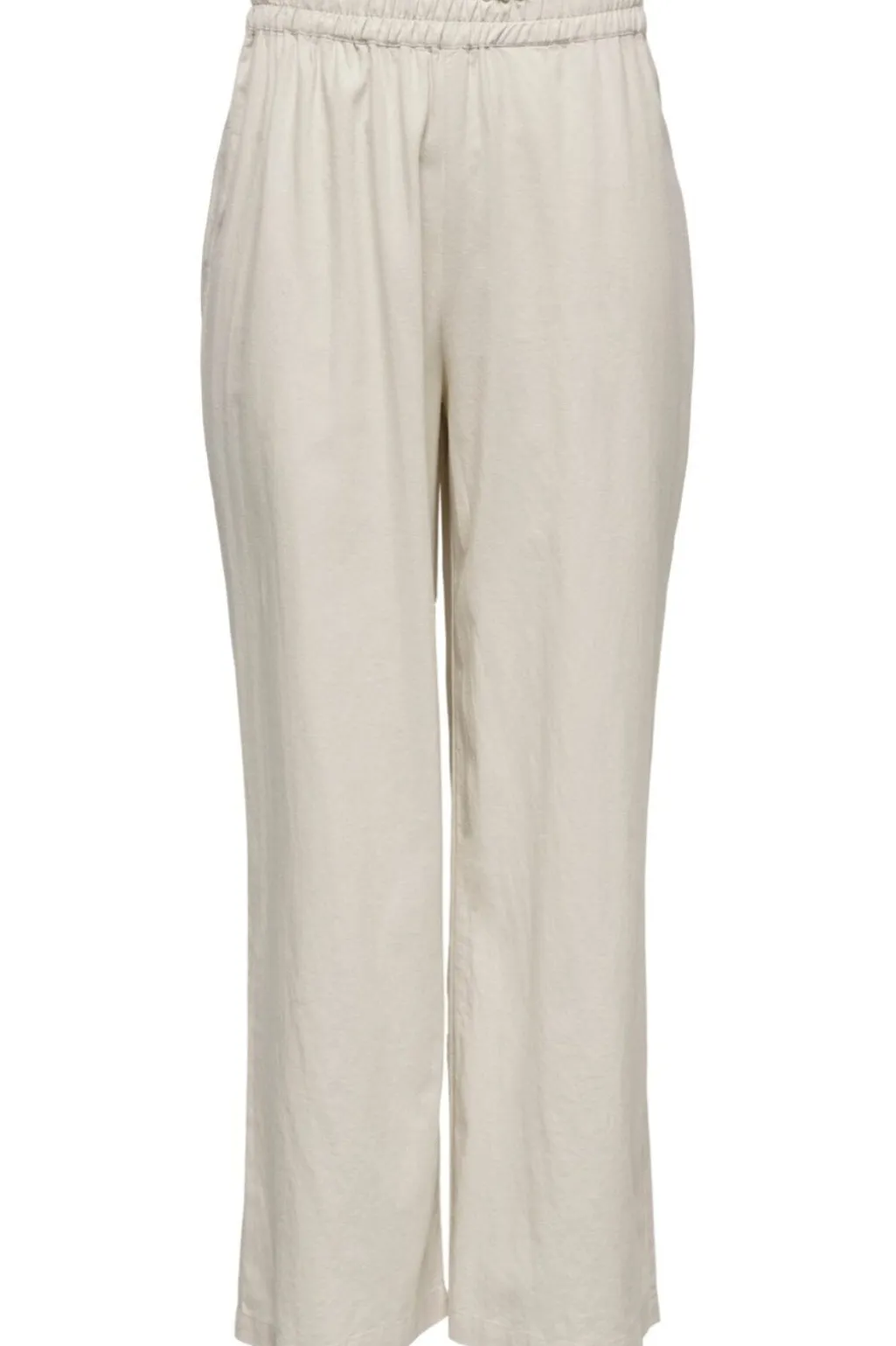 Lyse bukser fra Only med høj talje og wide fit. Bukserne har en afslappet pasform med lige ben og elastik i taljen med snøre.