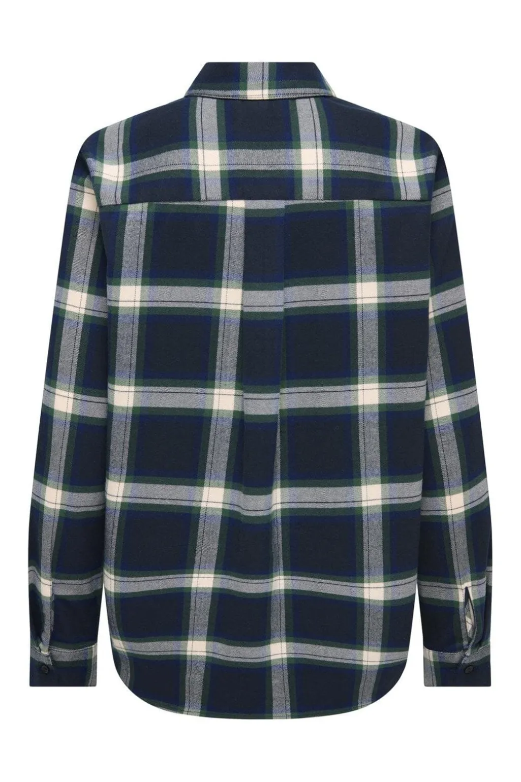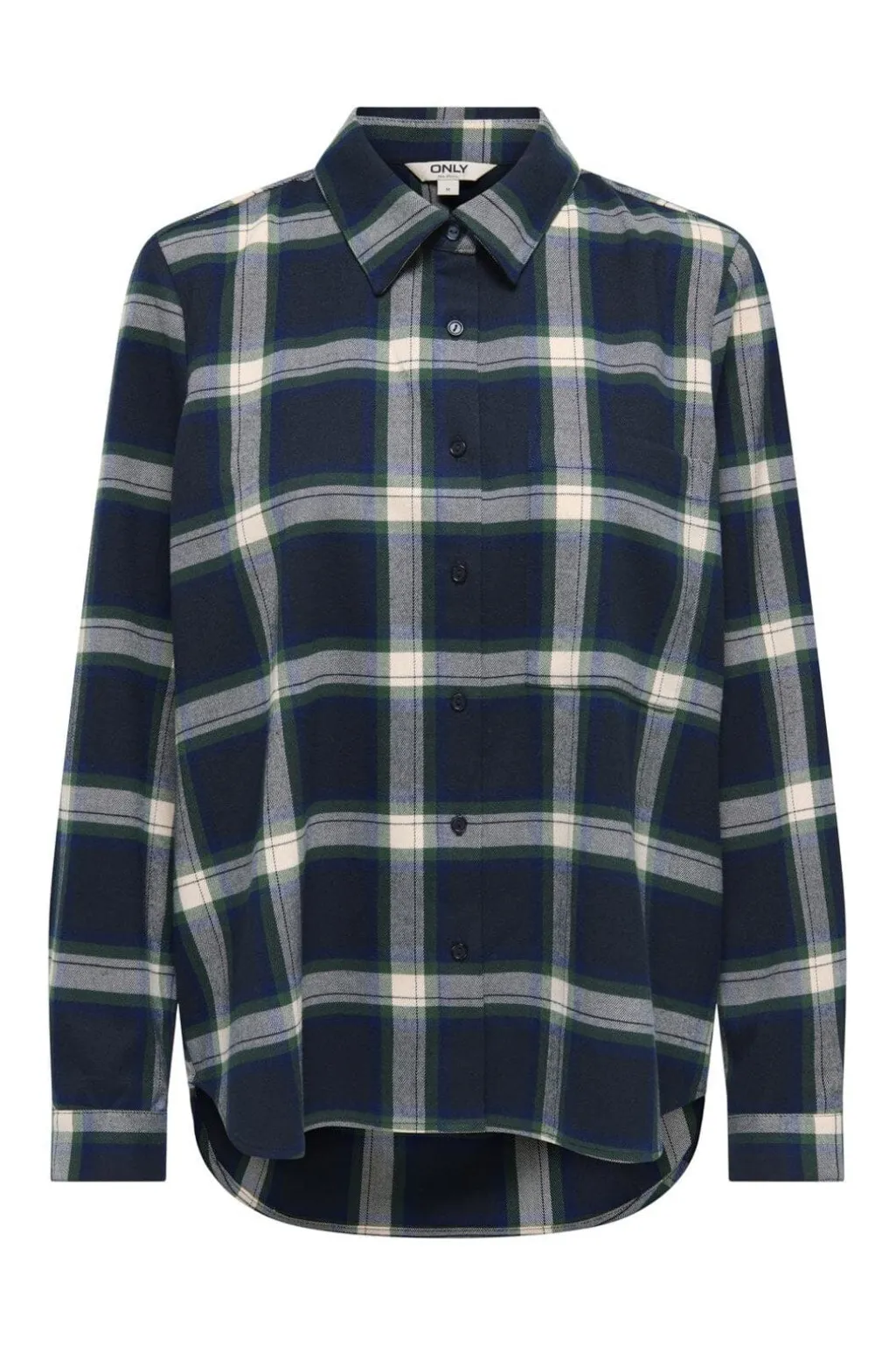 Ternet skjorte fra Only med et karakteristisk mønster i mørkeblå, grøn og hvid. Skjorten har en loose fit-pasform og en klassisk skjortekrave med knaplukning.