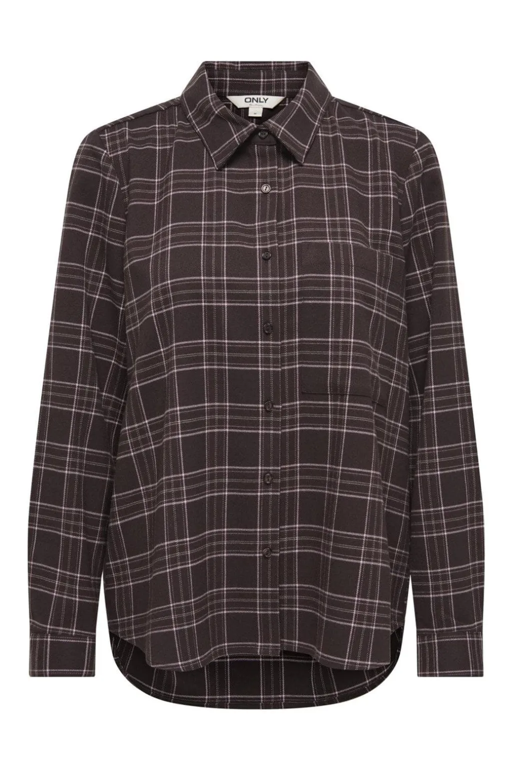 Sort ternet skjorte fra Only med lyse linjer i det klassiske design. Skjorten har en traditionel krave og knaplukning foran med brystlomme på venstre side.