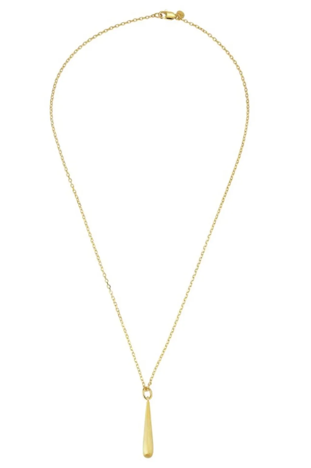 Dråbeformet vedhæng fra Jane Kønig i forgyldt sterling sølv. Vedhænget har en slank form med en mat overflade, der fremhæver det enkle design.