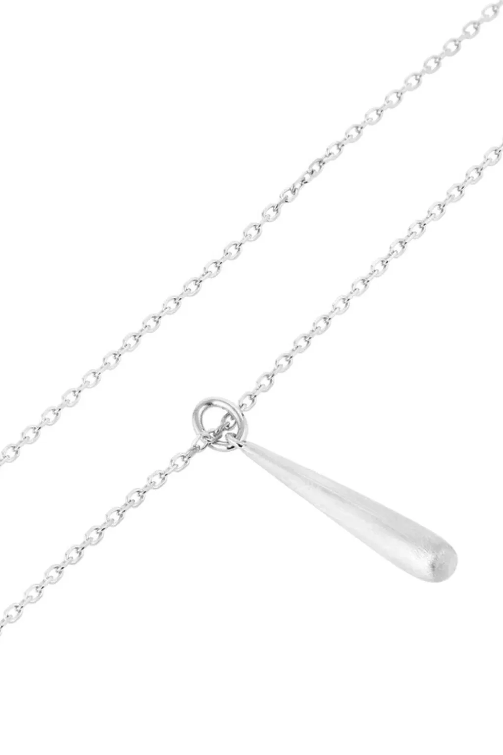Sølvvedhæng fra Jane Kønig med en lang, dråbeformet silhuet. Den børstede overflade giver vedhænget en mat finish, der spiller fint sammen med det rene design.