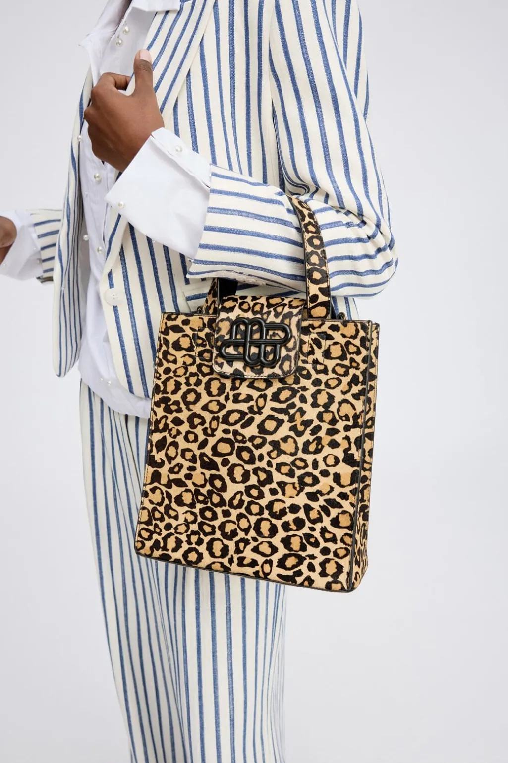 Brunt læderbælte fra Munthe med leopardmønster. Bæltet har en naturlig hårstruktur i læderet og en bæltespænde med Munthe-emblem, der giver et karakteristisk præg.