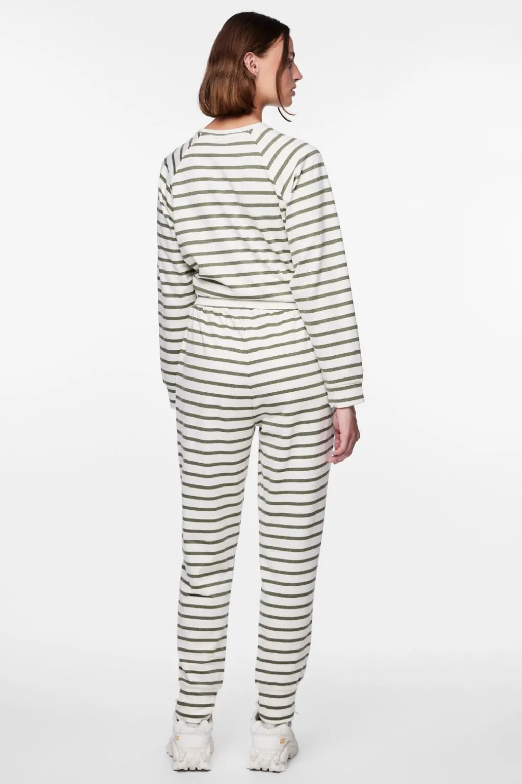 Stribede bukser fra Pieces i grøn og hvid. Bukserne har en afslappet pasform med elastisk talje og snøre til justering. Det stribede mønster giver et enkelt og stilrent udtryk.