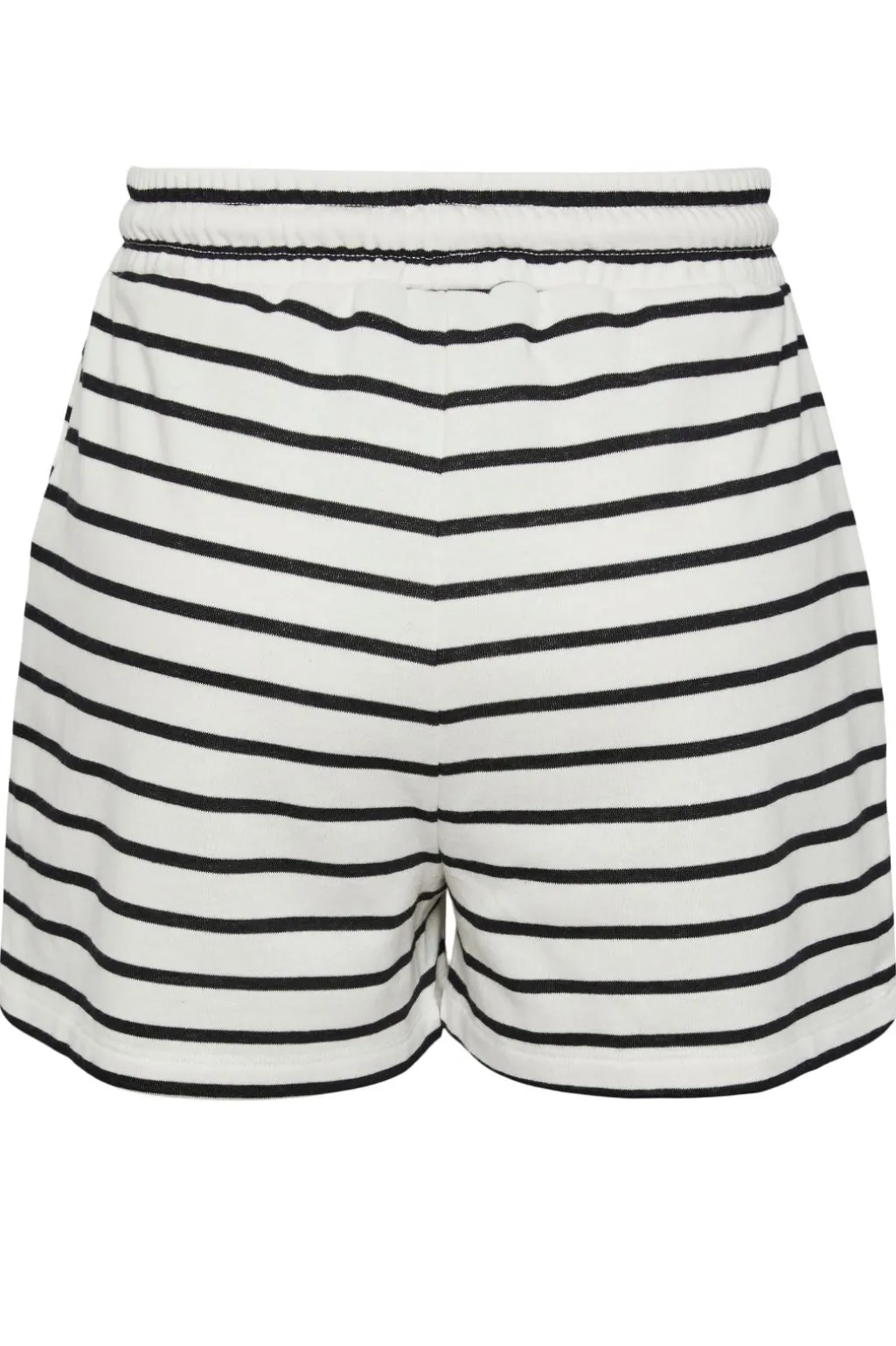 Stribede shorts fra Pieces med sort-hvidt mønster. Shortsene har en regulær pasform og en elastisk talje med snøre, der gør dem behagelige at have på både hjemme og ude.