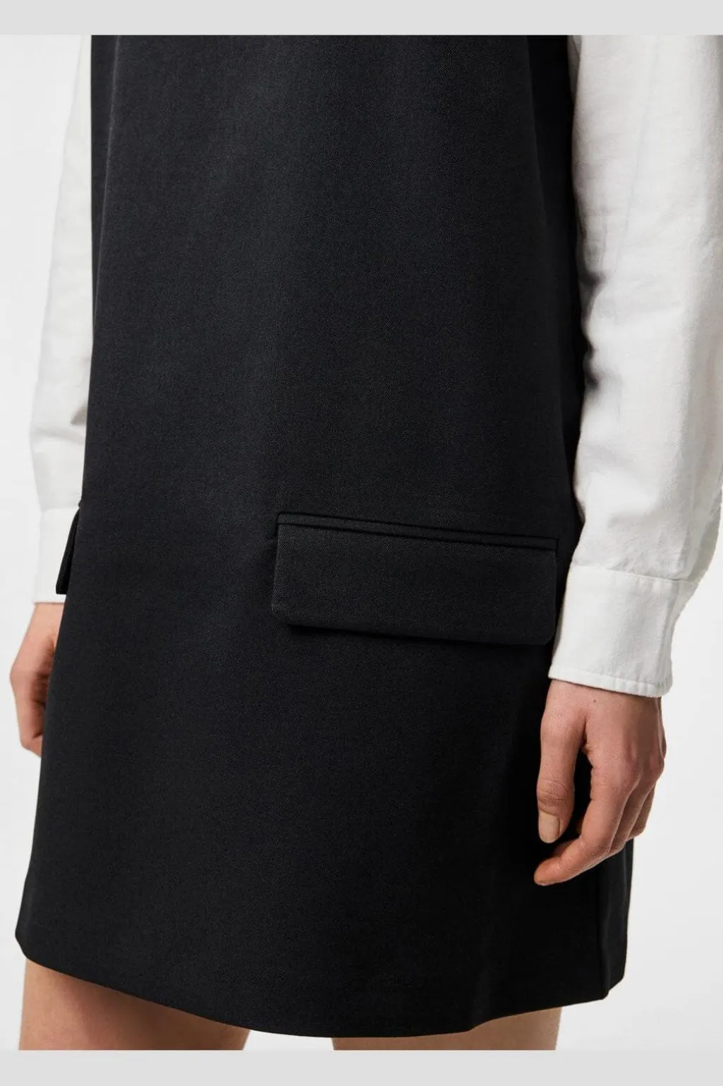 Sort kjole fra Pieces med firkantet halsudskæring og lårlængde. Den ærmeløse model har et enkelt design med praktiske detaljer, der gør den brugbar til forskellige anledninger.
