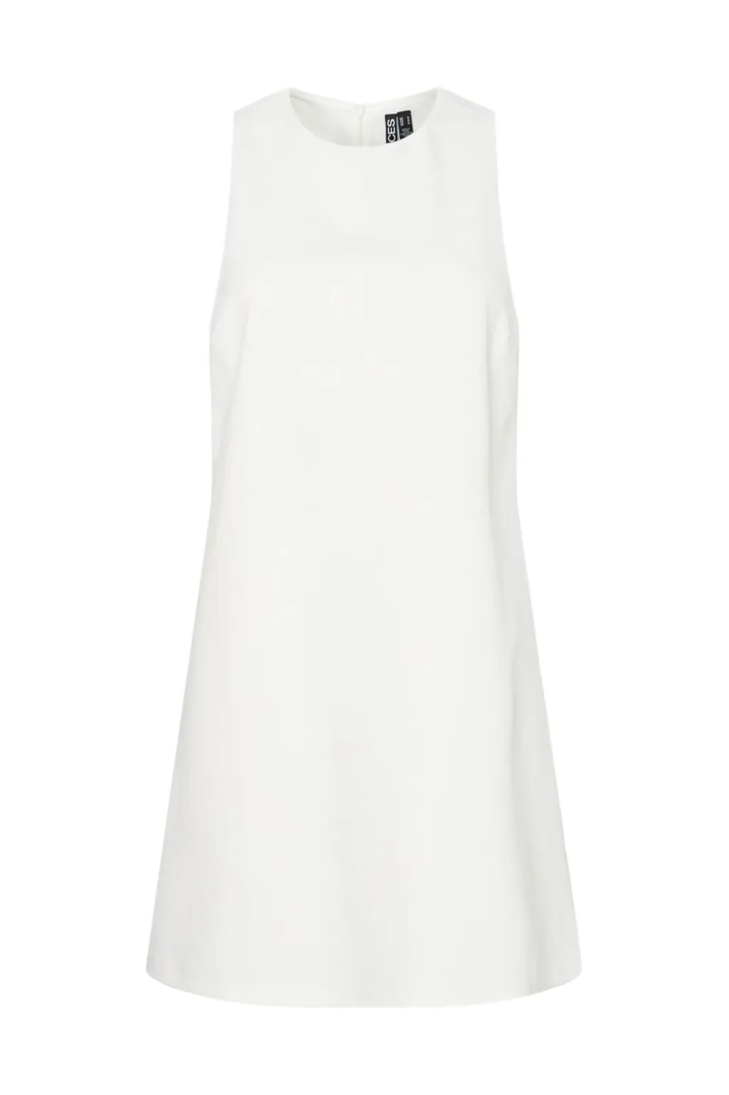 Hvid kjole fra Pieces med rund halsudskæring og ærmeløst design. Kjolen har en løs pasform og en lynlås lukning bagpå.