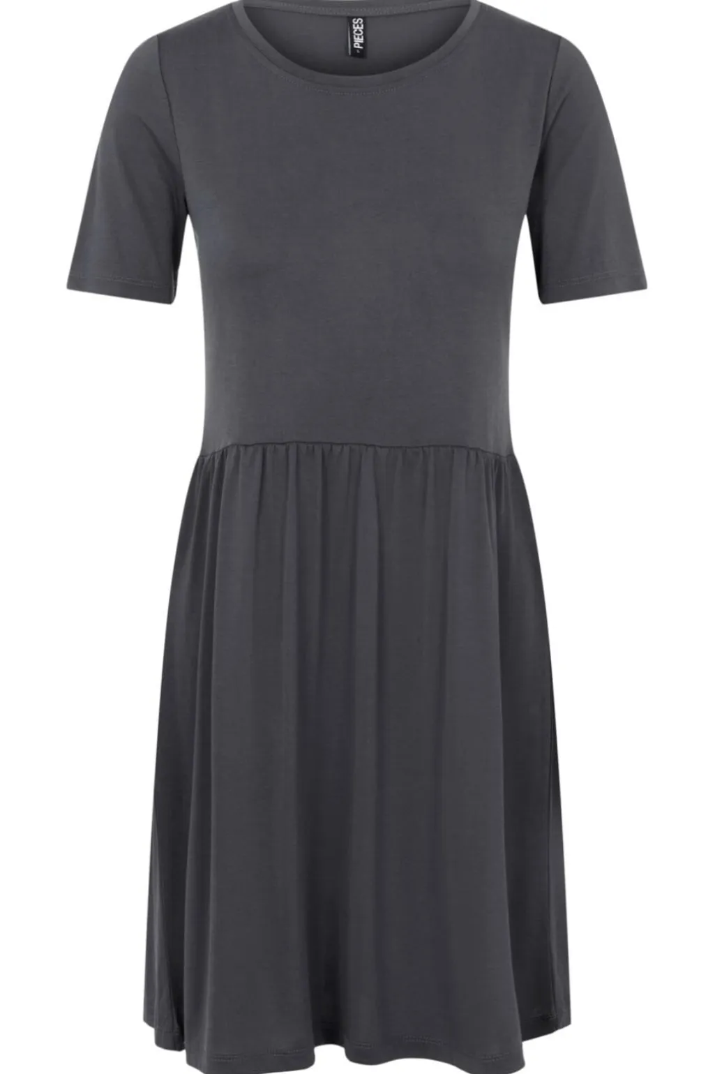 Knælang kjole fra Pieces i ombre blå med flæsedetaljer. Kjolen har korte ærmer og en rund halsudskæring, der giver et rent og enkelt udtryk.