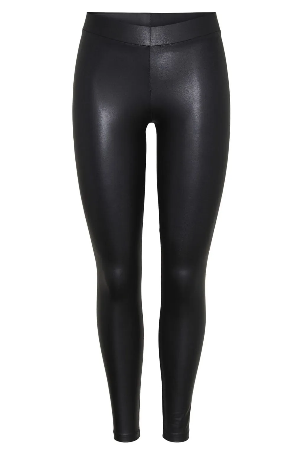 Sorte leggings fra Pieces med en skinnende overflade. De tætsiddende leggings har en bred elastisk kant ved taljen og er lavet af strækstof, der følger kroppens bevægelser.