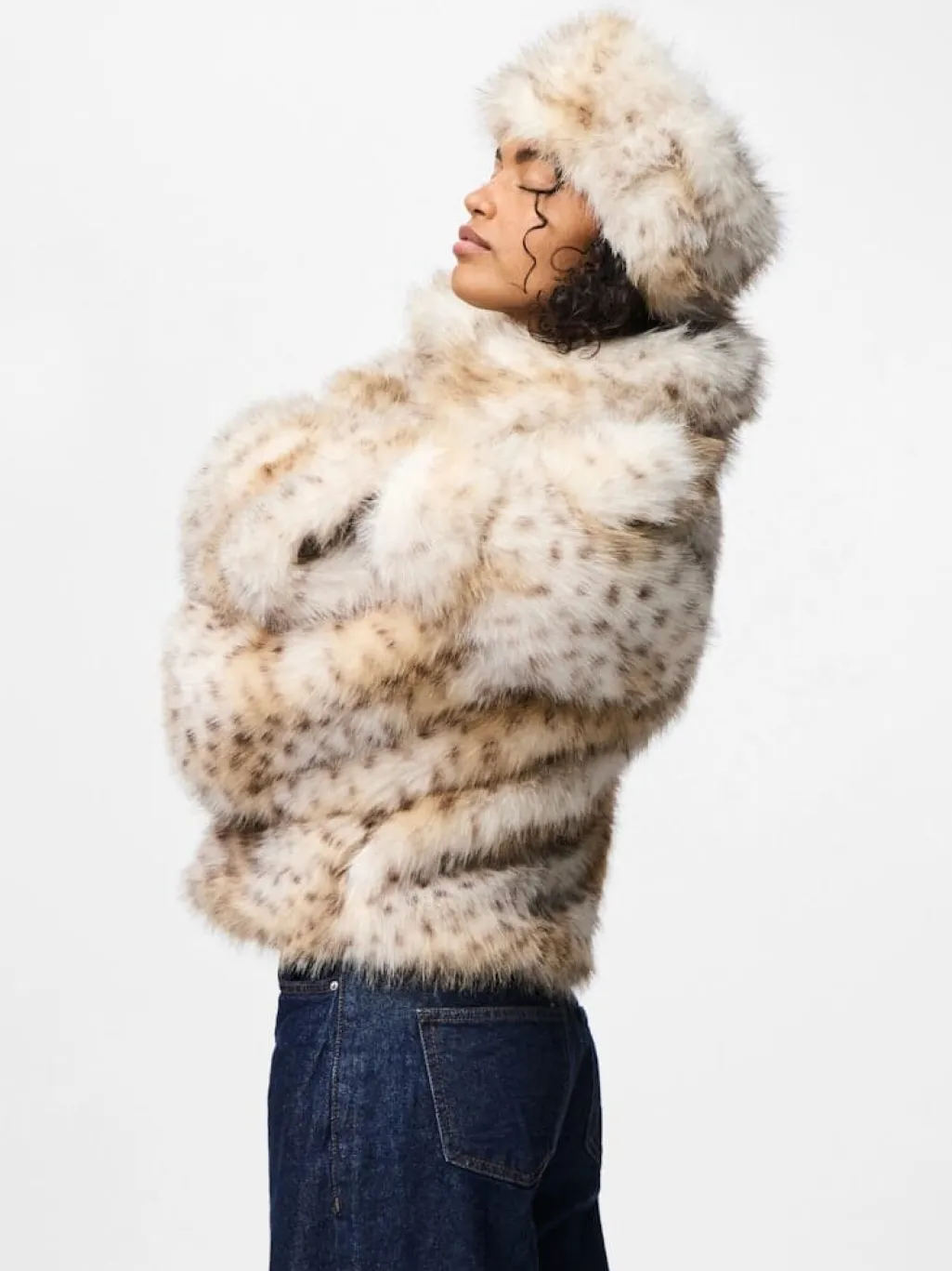Fluffy hovedbånd fra Pieces med leopardmønster på en lys baggrund. Hovedbåndet har mørke pletter og en blød tekstur.
