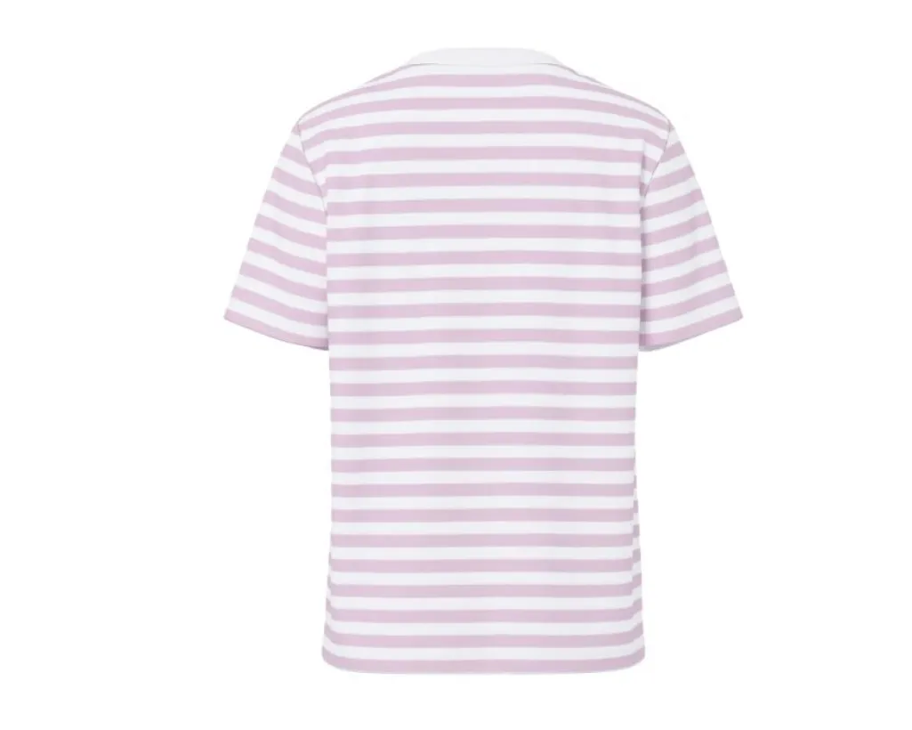 T-shirt fra Pieces med vandrette striber i lys lilla og hvid. Den har en rund halsudskæring og korte ærmer.