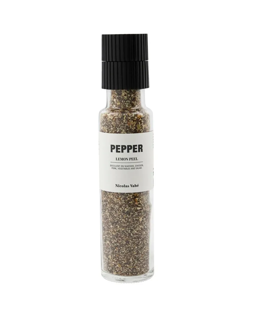Materiale: sorte peberkorn knust 70%, citronskal 30%.