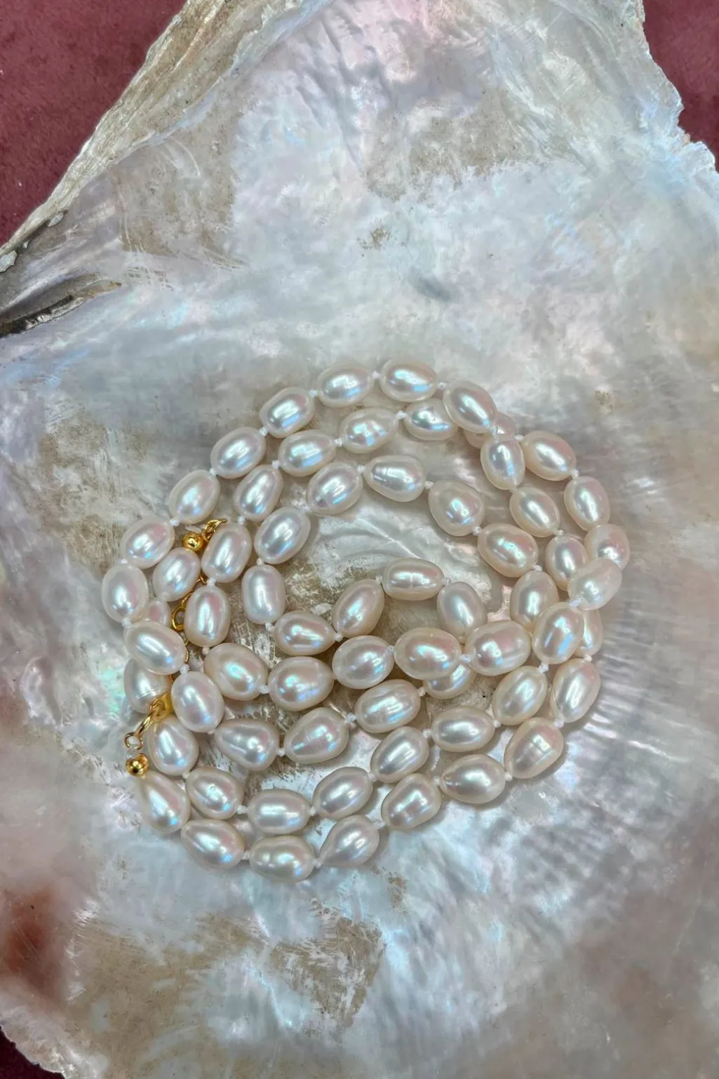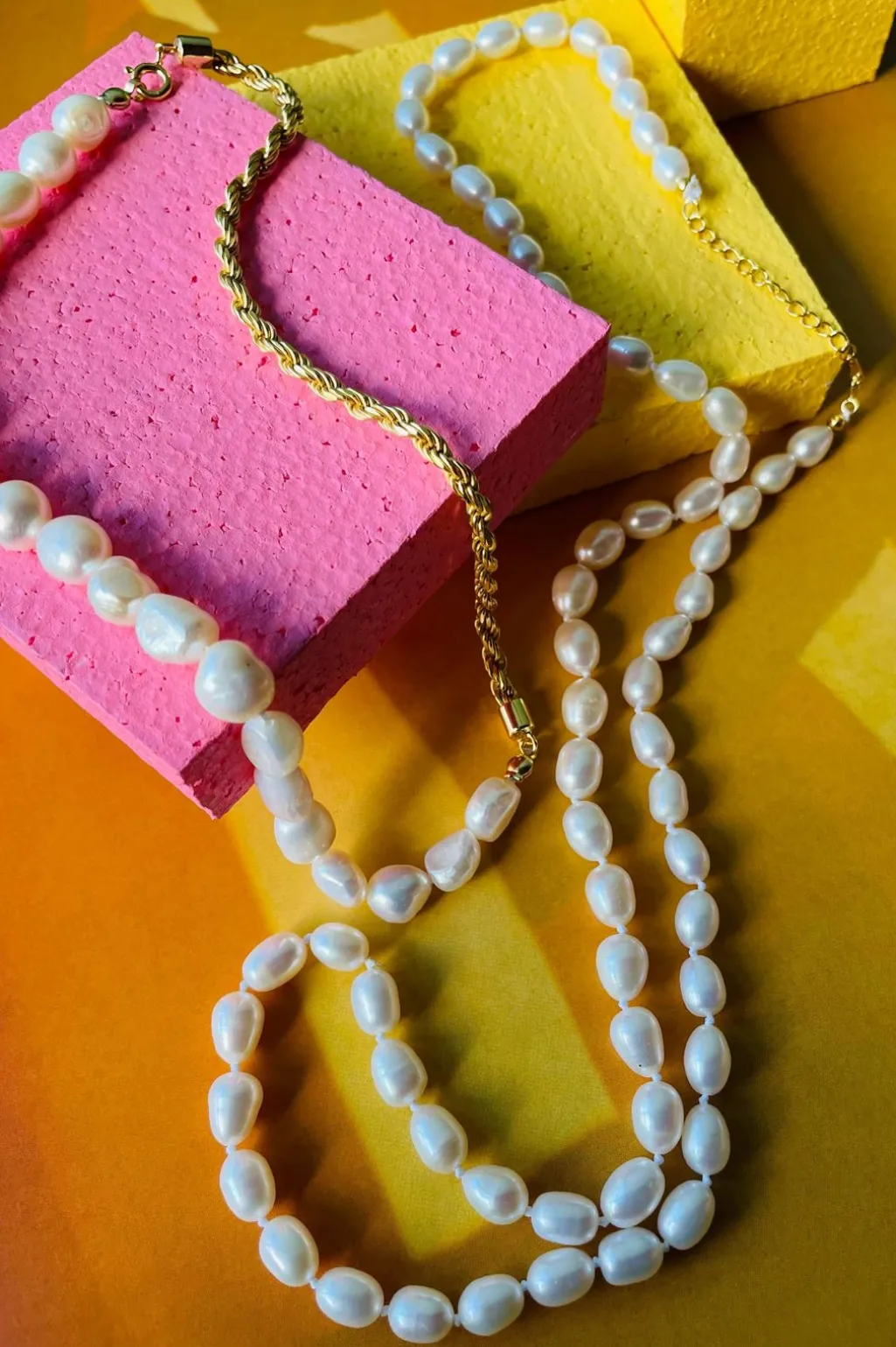 Velkommen til vores eget brand her hos MollyogMy.dk med en masse fine mor & barn smykker. Smuk perle halskæde fra Mellow Moon. Med guld detaljer.