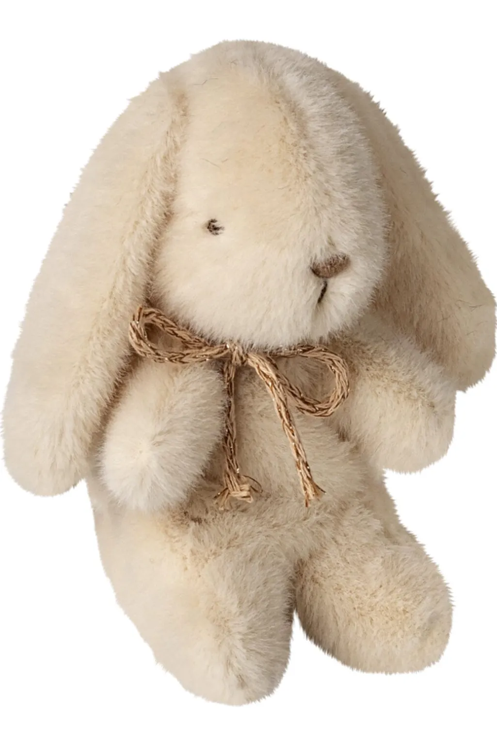 En plyskanin fra Maileg i råhvid farve. Kaninen har lange ører og syede ansigtstræk, og den måler 13 cm i højden.