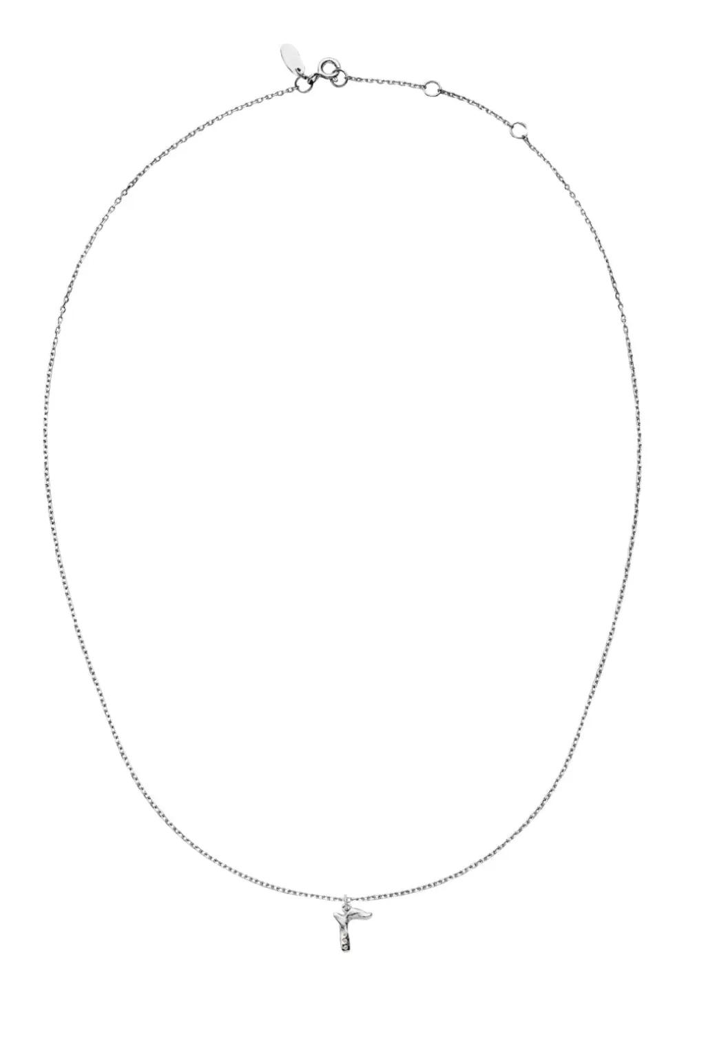 Sølvhalskæde fra Maanesten med R-bogstavvedhæng. Halskæden er fremstillet af genanvendt sterlingsølv med små skinnende detaljer i vedhænget.
