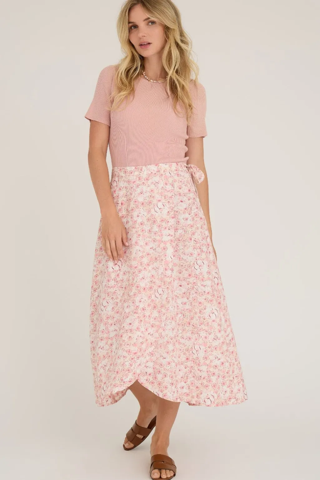 Ribstrikket top fra A-View i en lys rosa nuance. Toppen har en tætsiddende pasform med rund halsudskæring og korte ærmer.