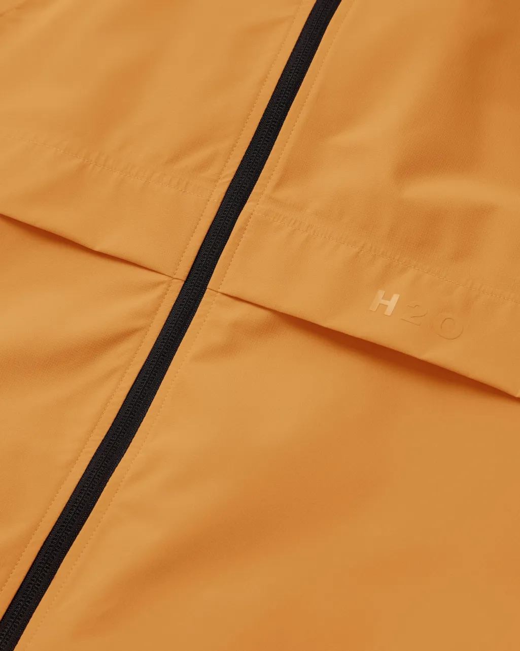 Pakbar regnjakke fra H2O i abrikosfarve. Fremstillet af genbrugt polyester med ECO-vandafvisende behandling og tapede sømme for effektiv beskyttelse mod regn.