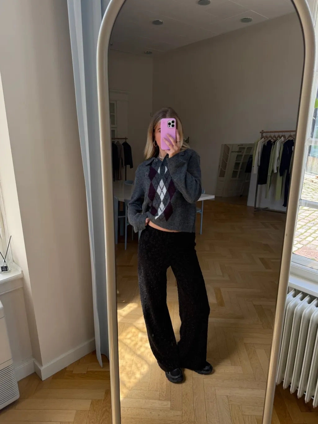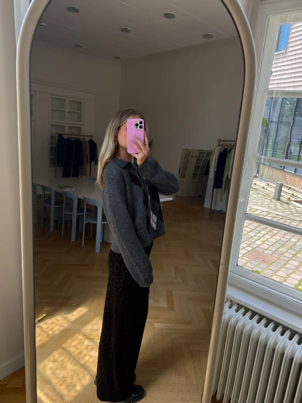 Grå polo fra Modström med et klassisk rudemønster i grå og bordeaux nuancer. Den har polokrave med knaplukning, lange ærmer og broderede detaljer på forsiden.