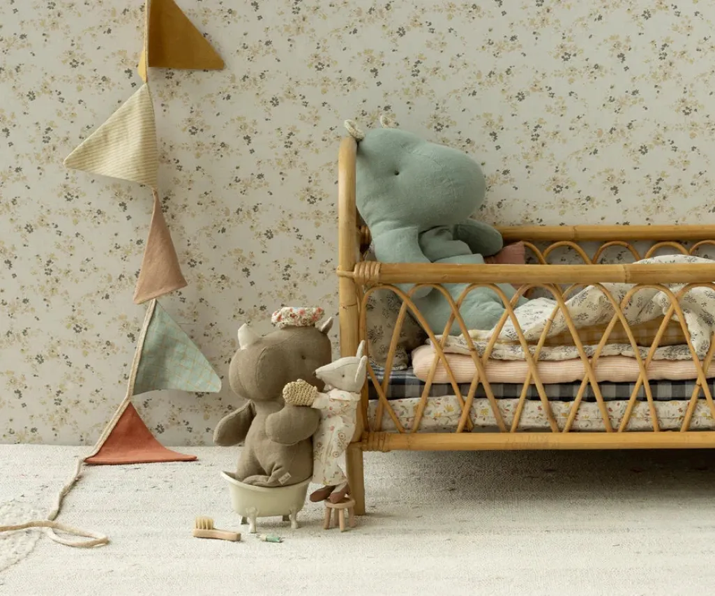 Brunt næsehorn i hør fra Maileg. Det bløde legetøj har en grå snude og mønstrede ører. Håndlavet i naturlige materialer med fokus på kvalitet og holdbarhed.