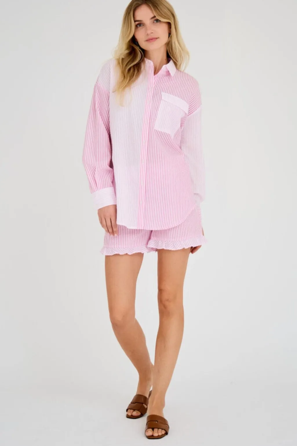 - Stribemønster i pink og hvid