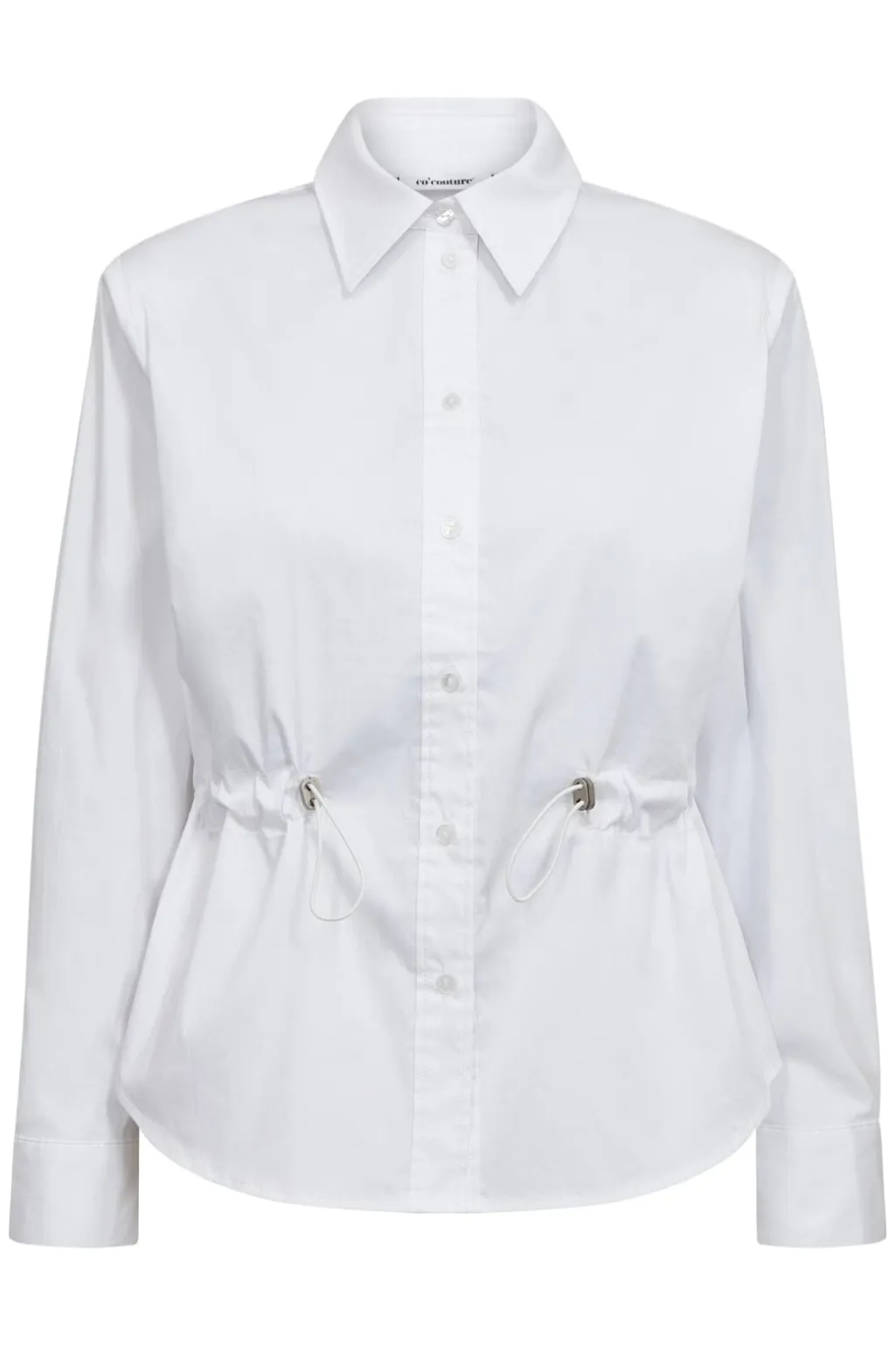 Hvid skjorte fra Co’Couture med struktureret krave og knaplukning. Skjorten har bindebånd i taljen, som kan justeres efter ønske.