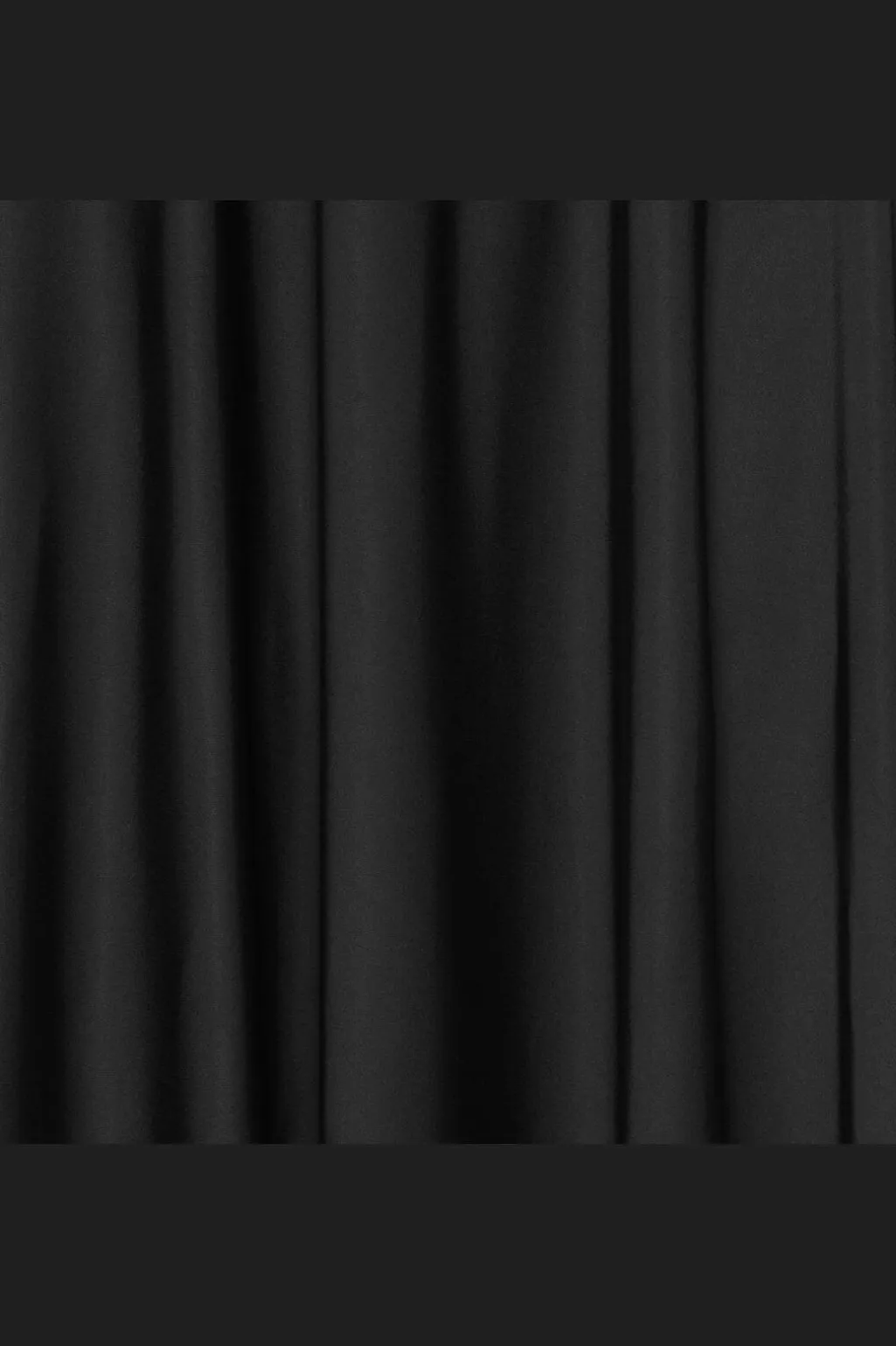 Sort nederdel fra Karmamia i halvblankt satin. Den har en høj talje med rynker og dekorative syninger. Nederdelen går til midt på læggen og har en løs pasform.