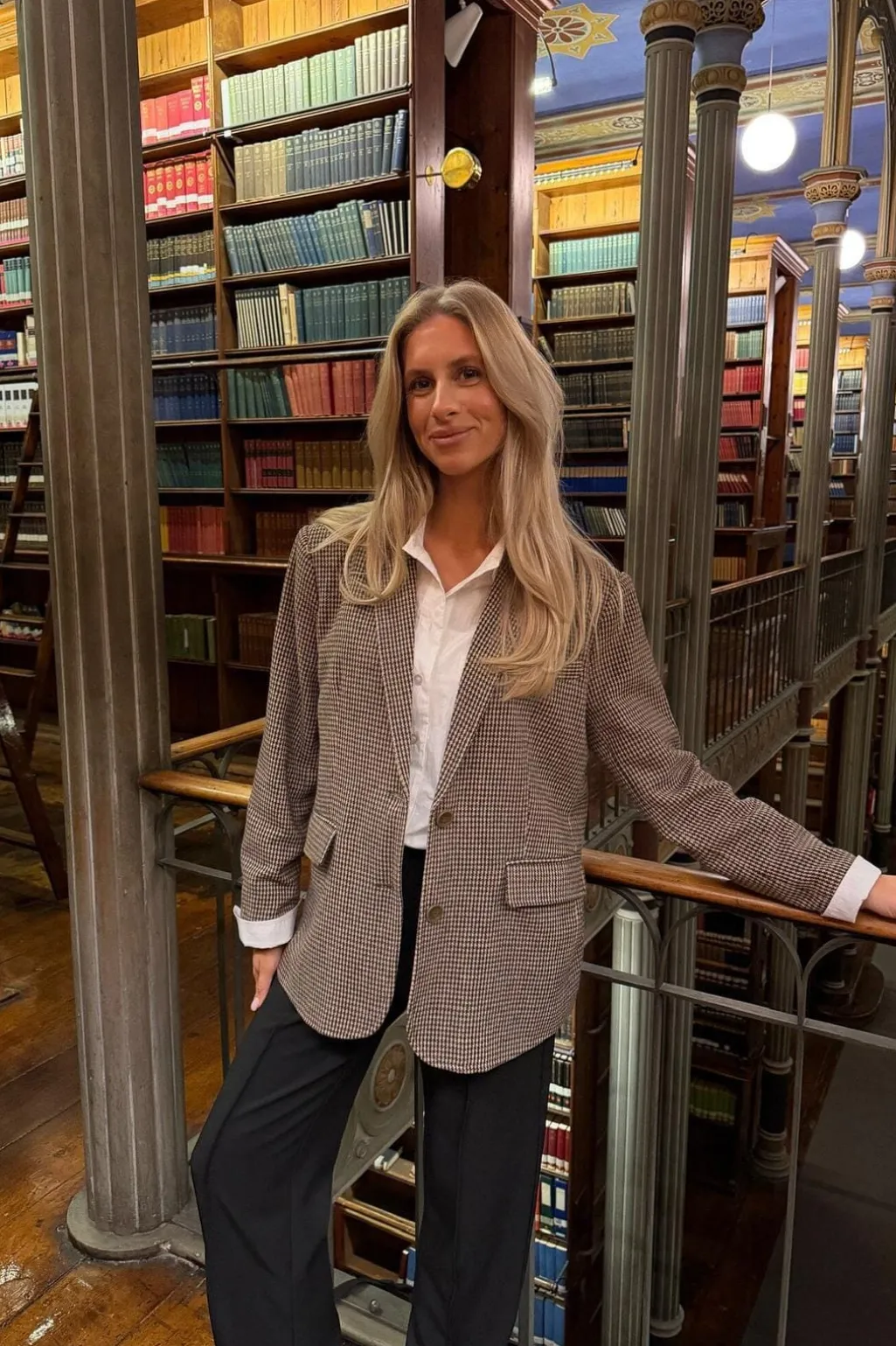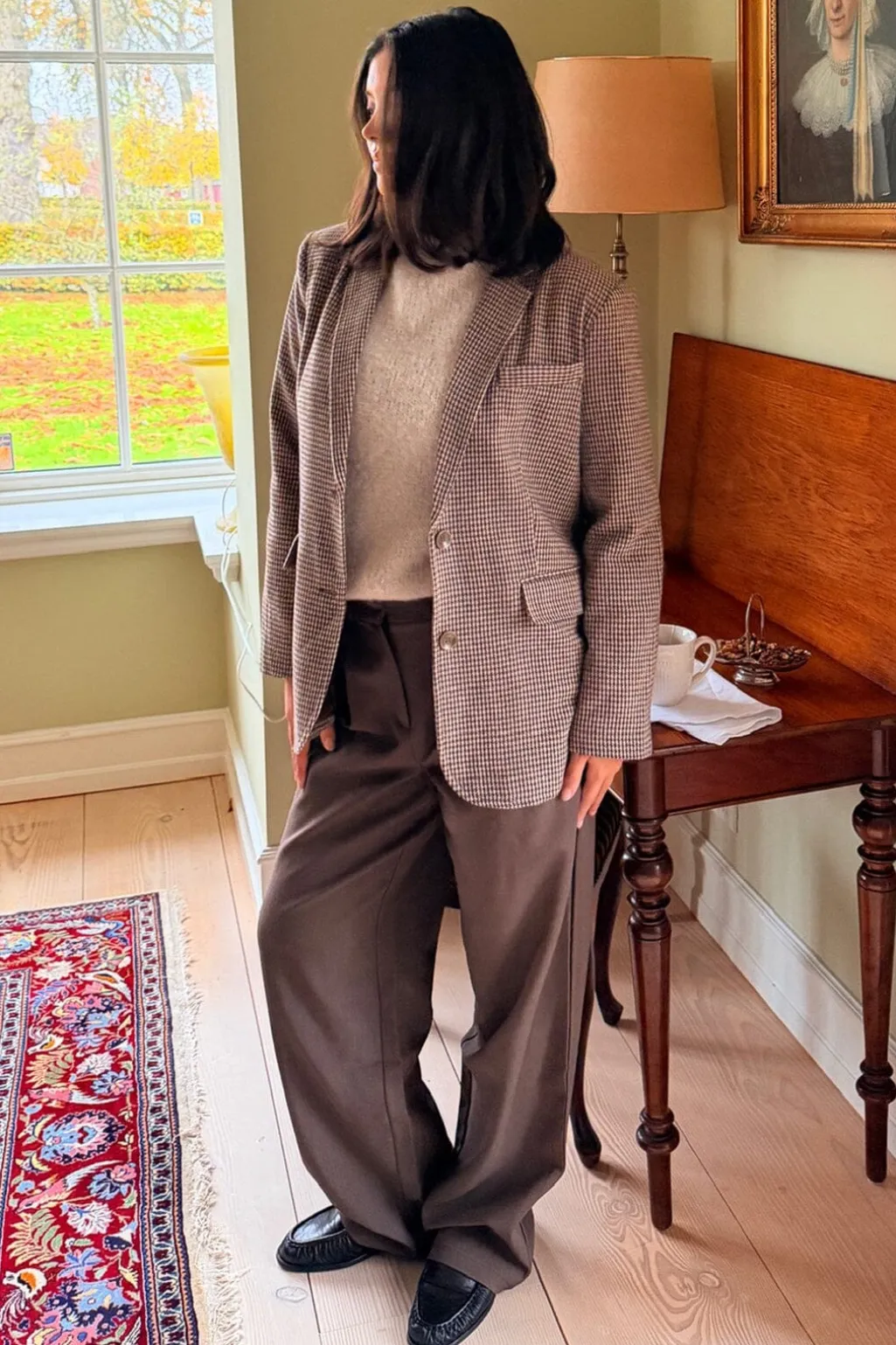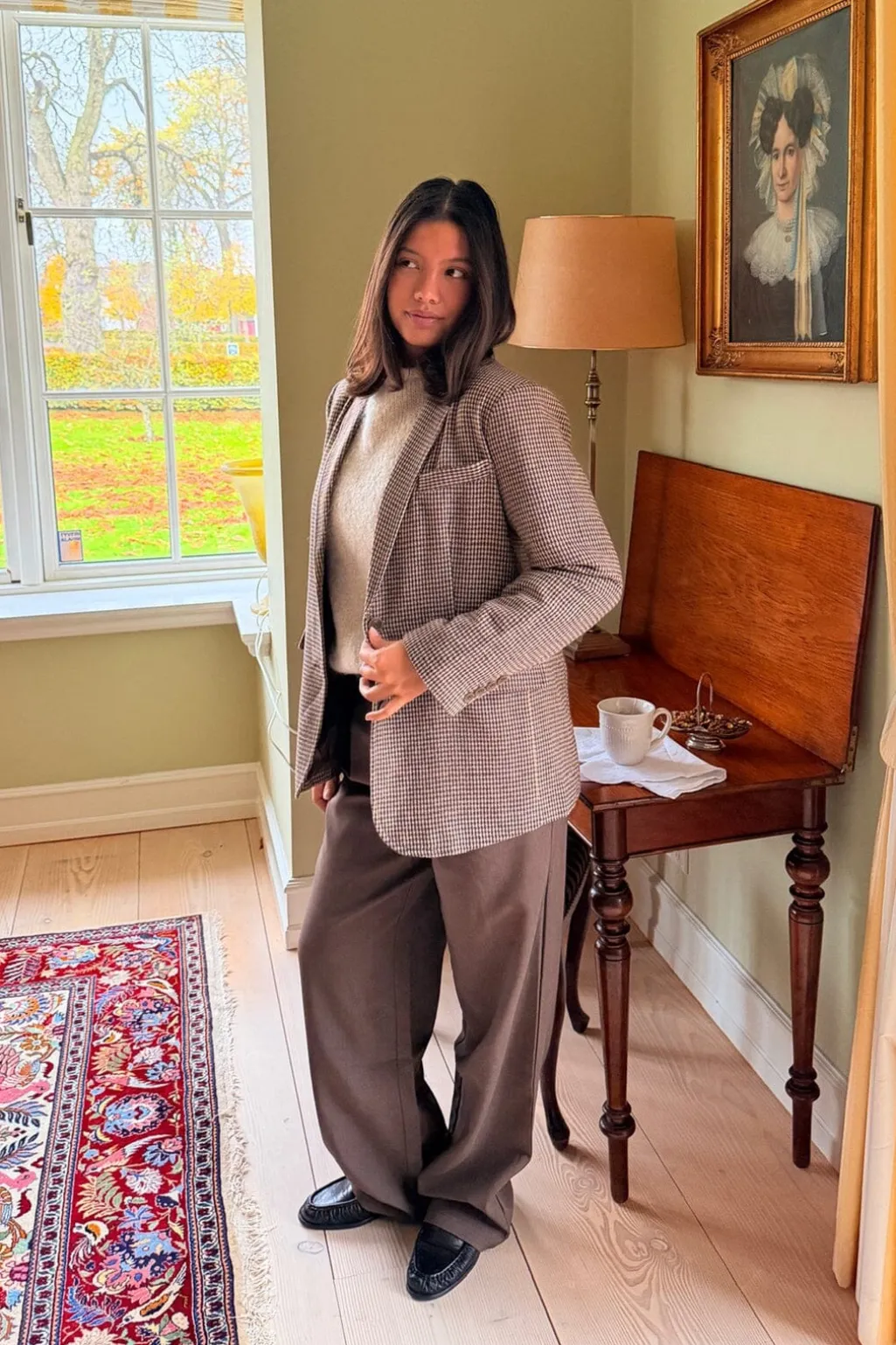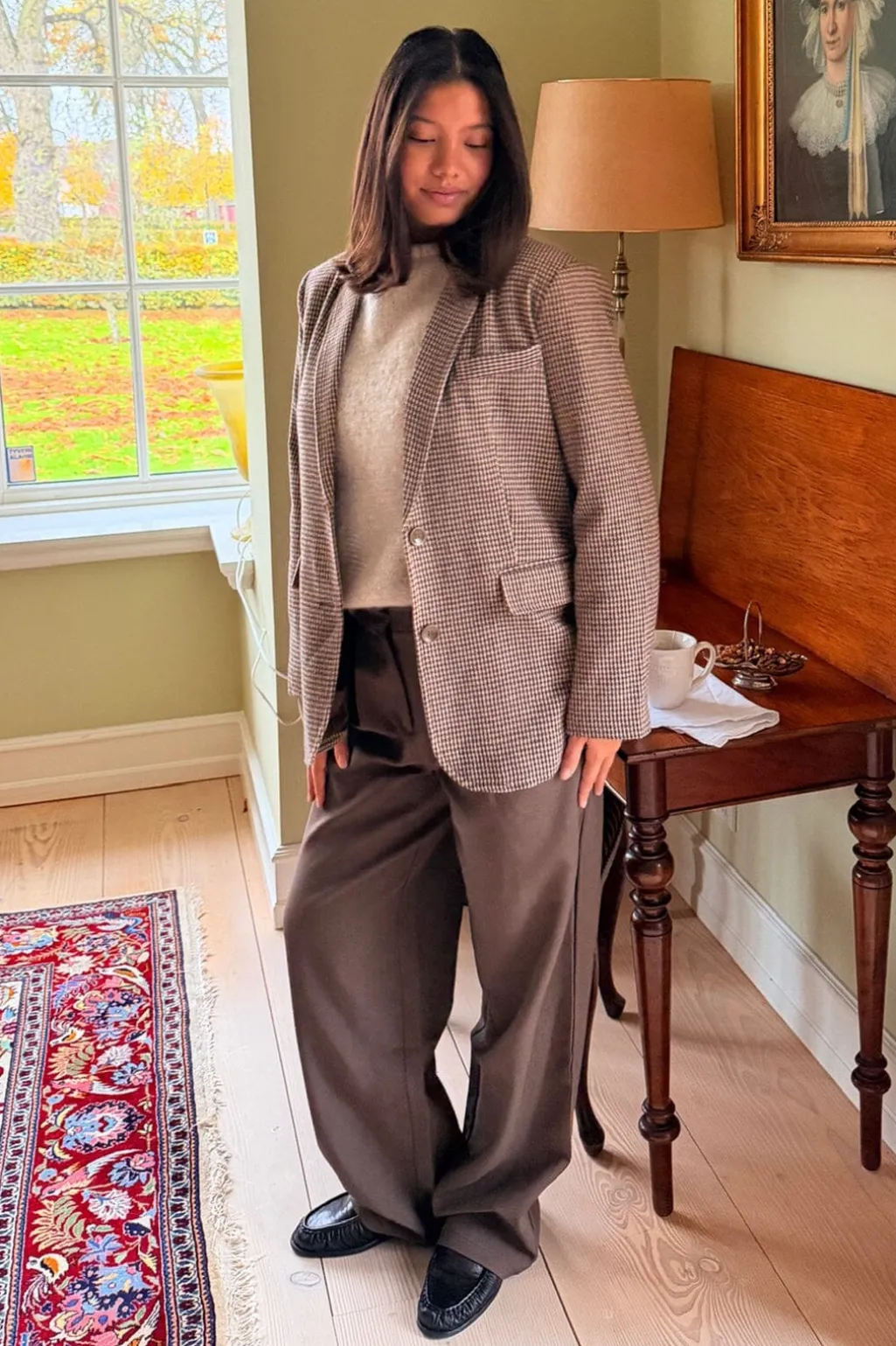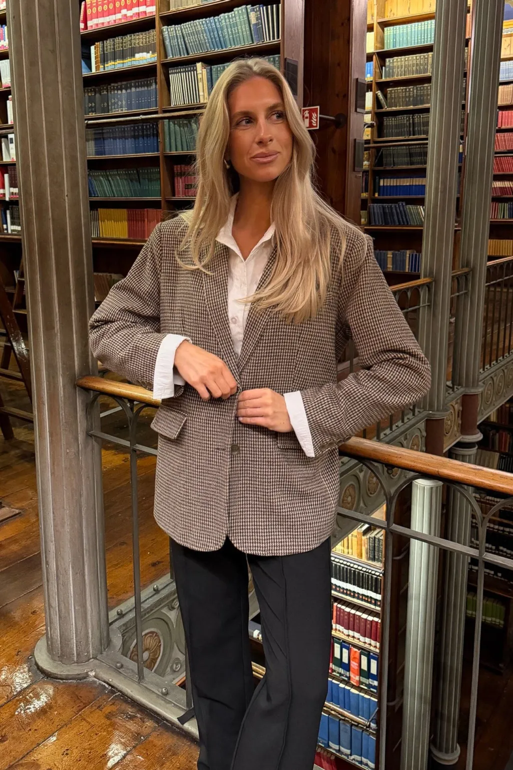 Brunternet blazer fra BYIC i et stof med 96 % polyester og 4 % elastan. Blazeren har skjortekrave, knaplukning og to forlommer.