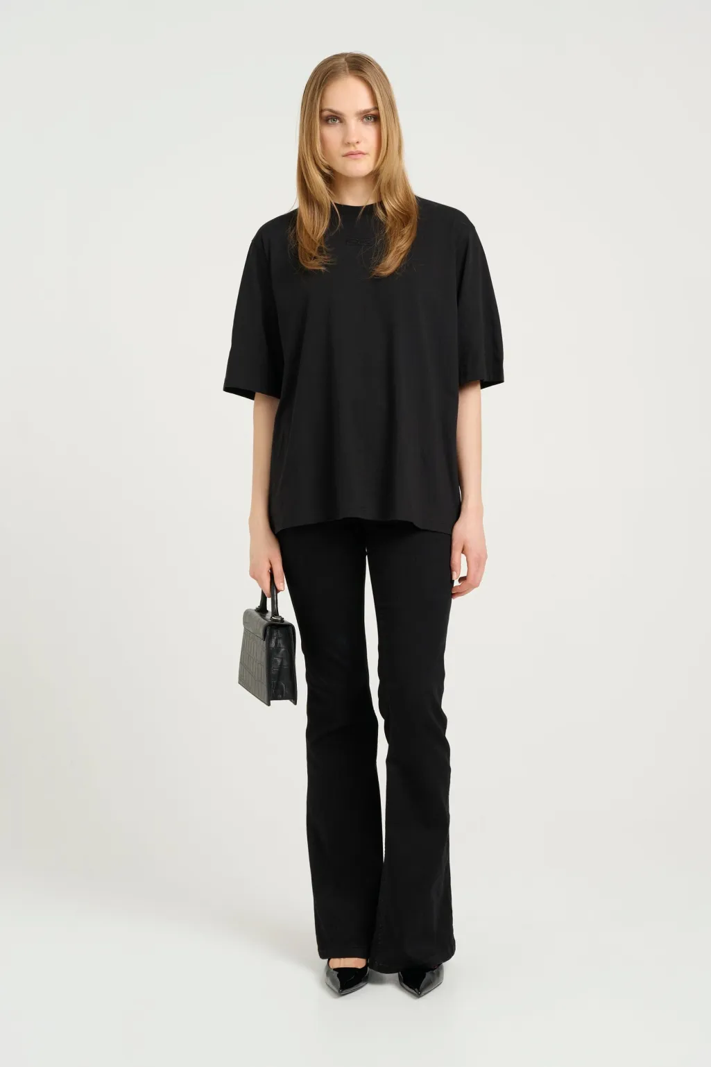 Sort t-shirt fra Gestuz med en oversized pasform. T-shirten har en rund halsudskæring og et broderet logo på forsiden, der giver et diskret præg.