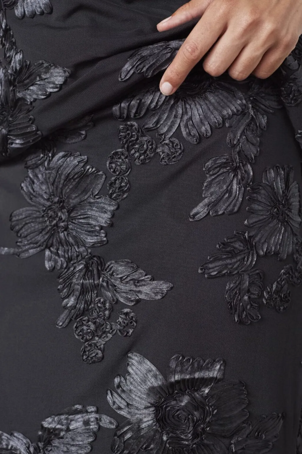 Sort nederdel fra Sisters Point med broderede blomstermotiver. Nederdelen er figursyet og passer til både festlige og formelle begivenheder.