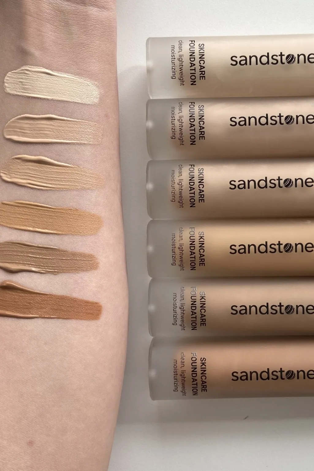 Flydende foundation fra Sandstone med medium dækning til alle hudtyper. En let formel med sheasmør og E-vitamin, der giver huden en jævn og strålende tone.