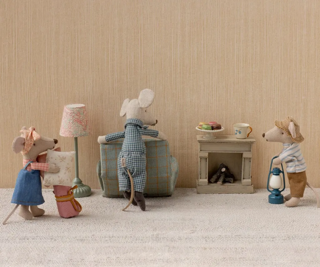 Møblet er designet til at passe sammen med SuitCasa-stuen fra Maileg, så det kan indgå i et sammenhængende legemiljø til musedukker.